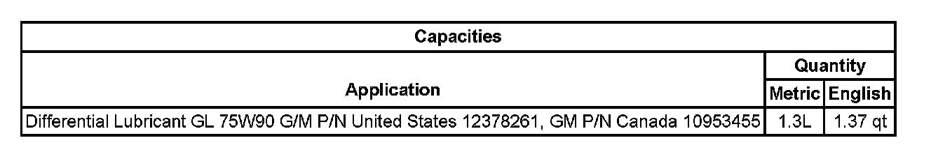 Lubrication Specifications: