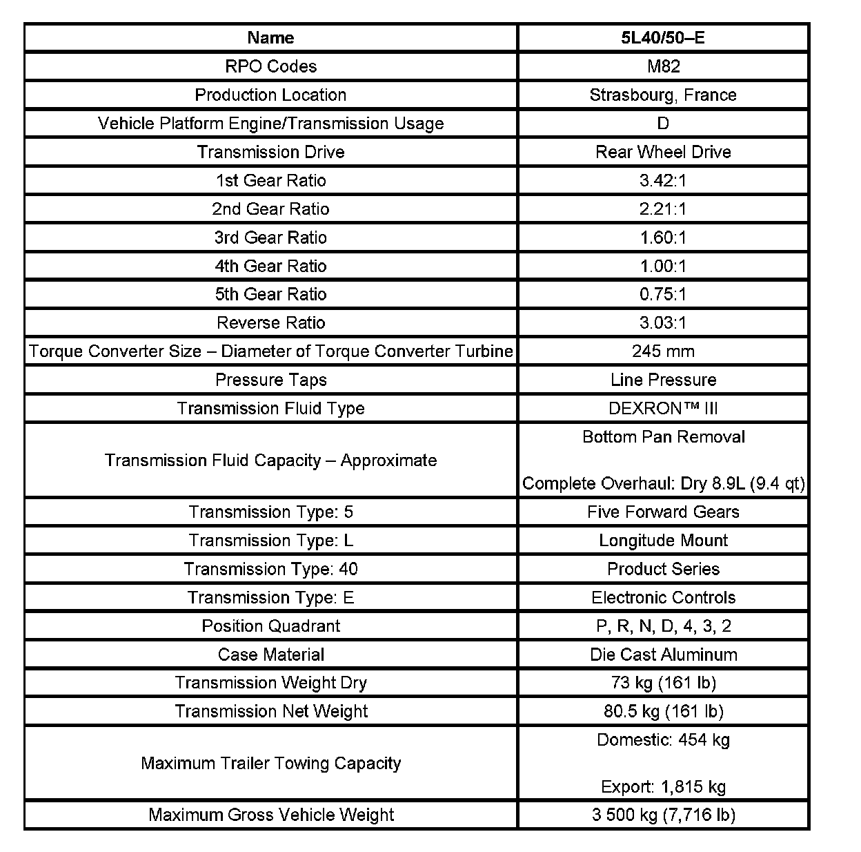 Transmission General Specifications:
