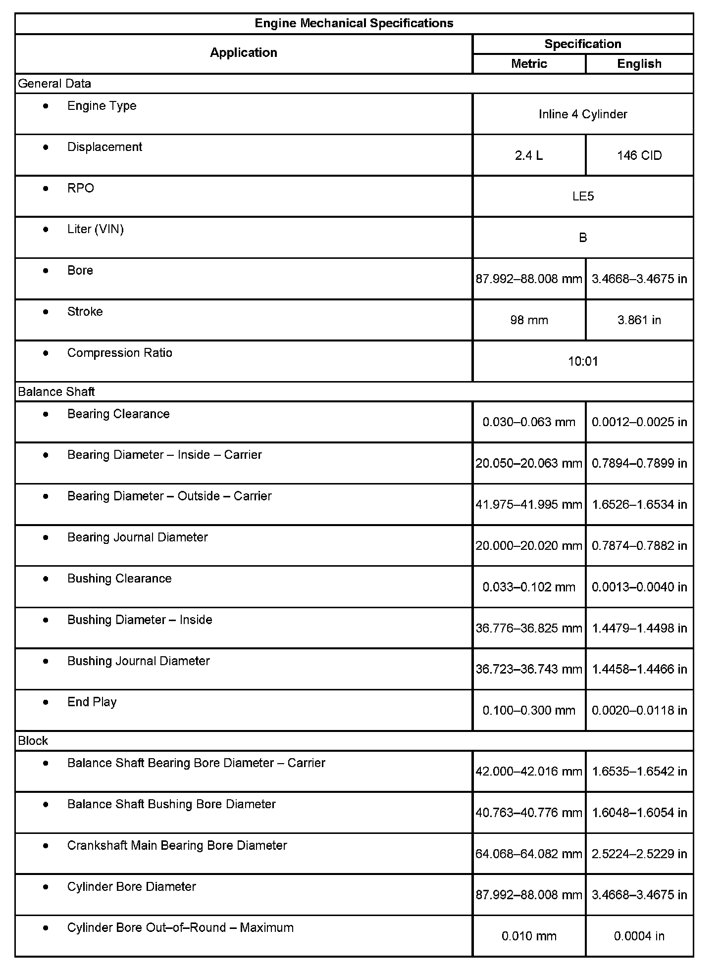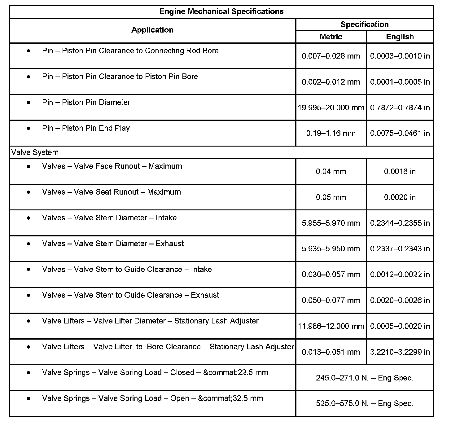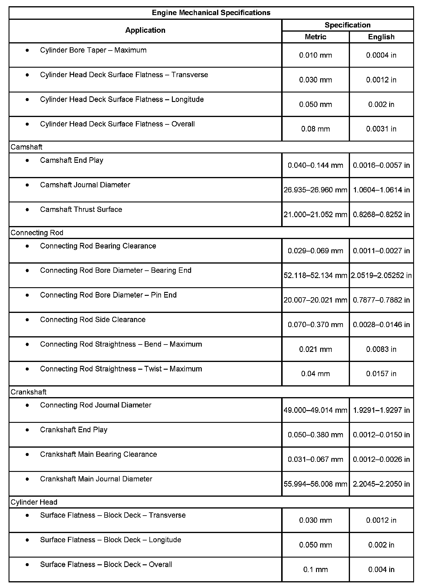 Engine Mechanical Specifications: