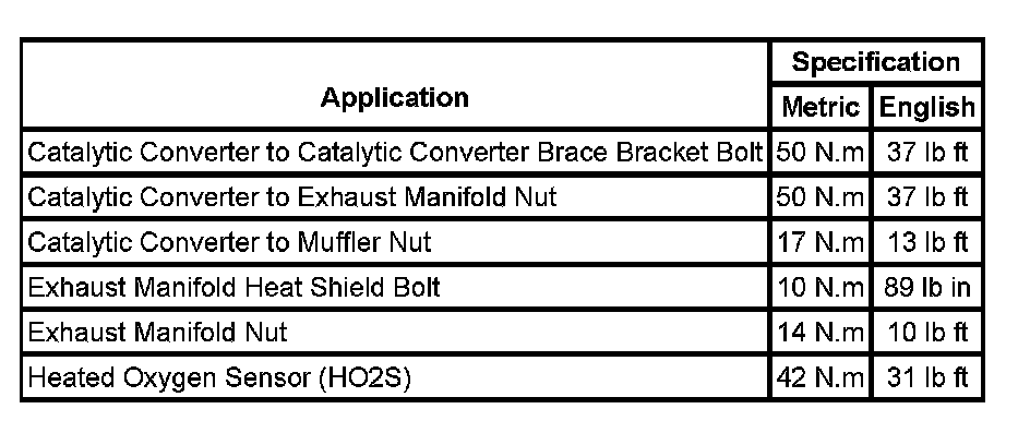 Fastener Tightening Specifications: