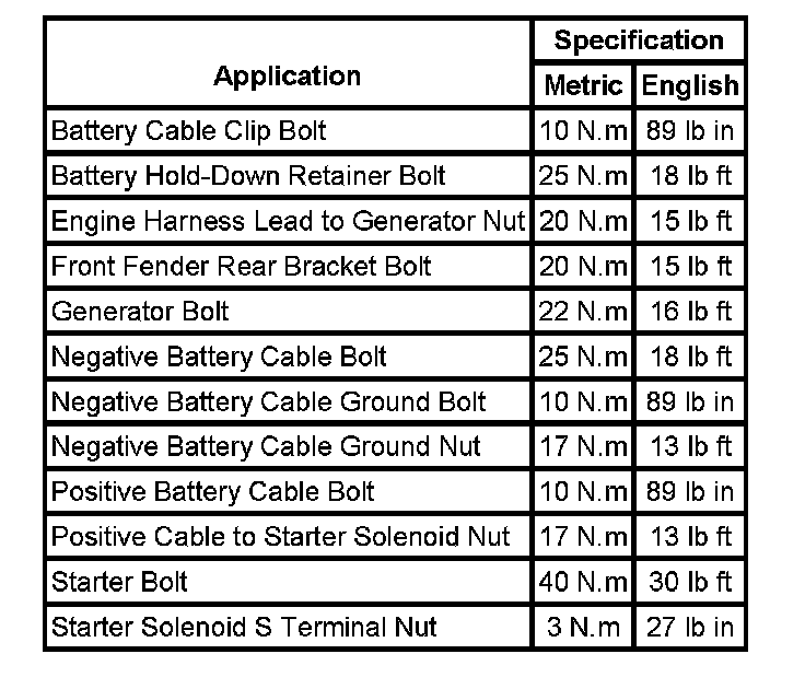 Starting and Charging: Specifications