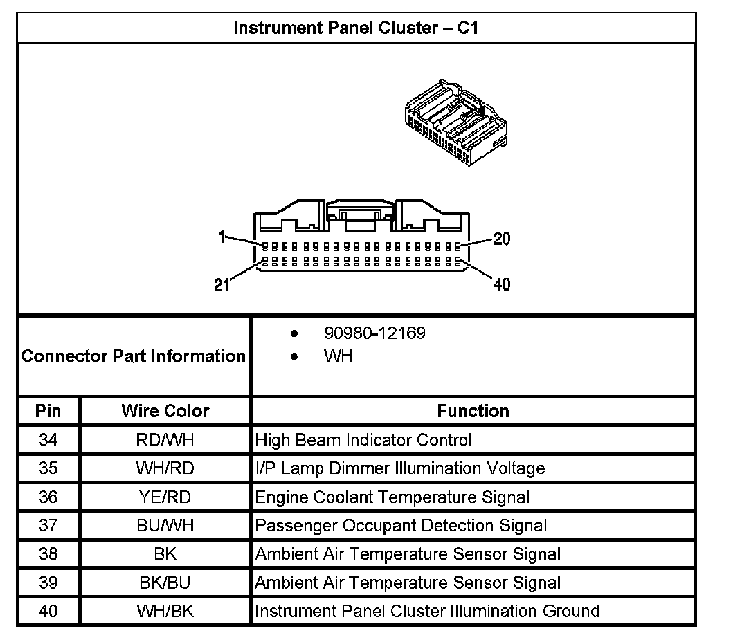 Instrument Panel Cluster - C1 (Part 1):