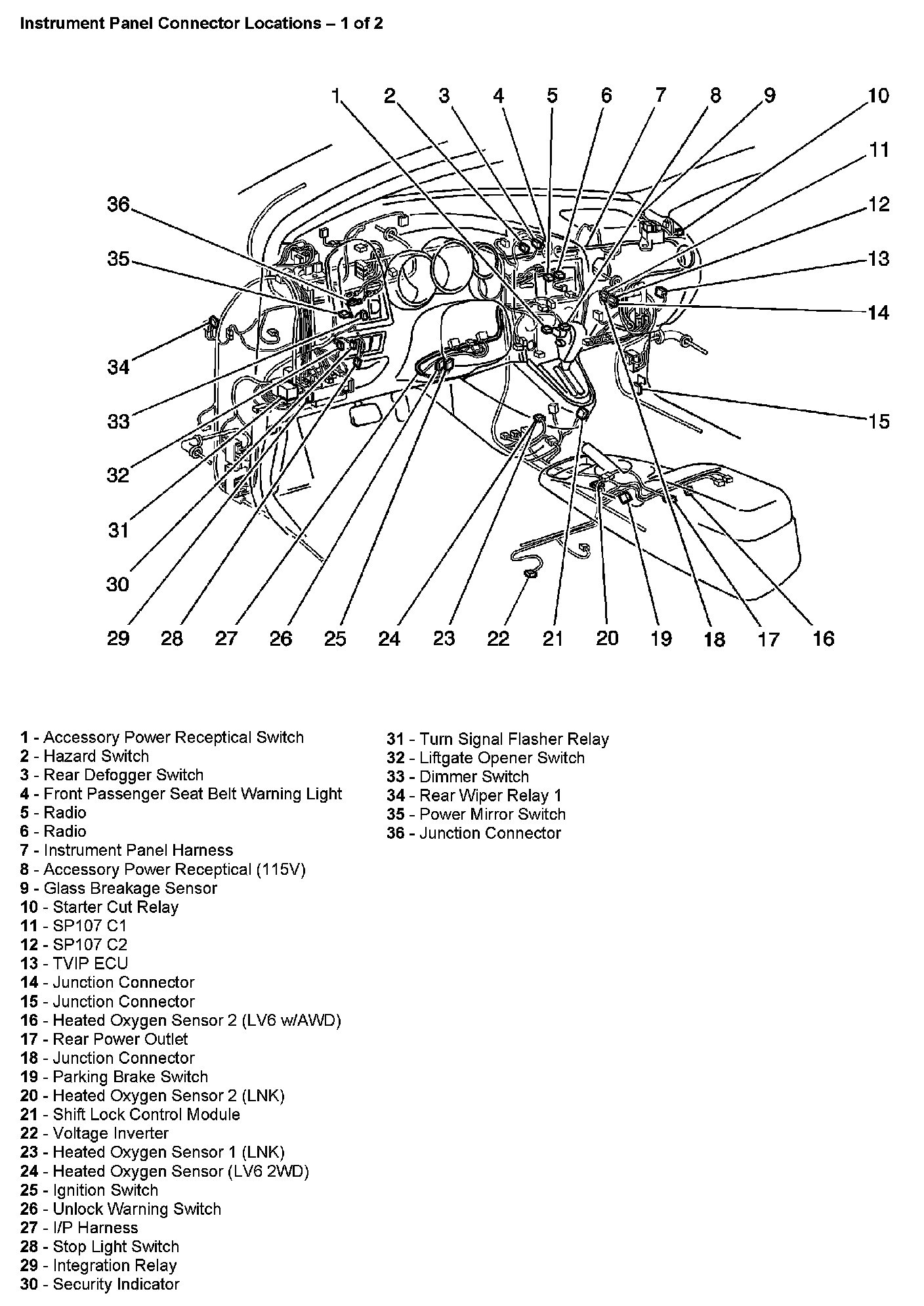 Instrument Panel Connector Locations (1 Of 2):