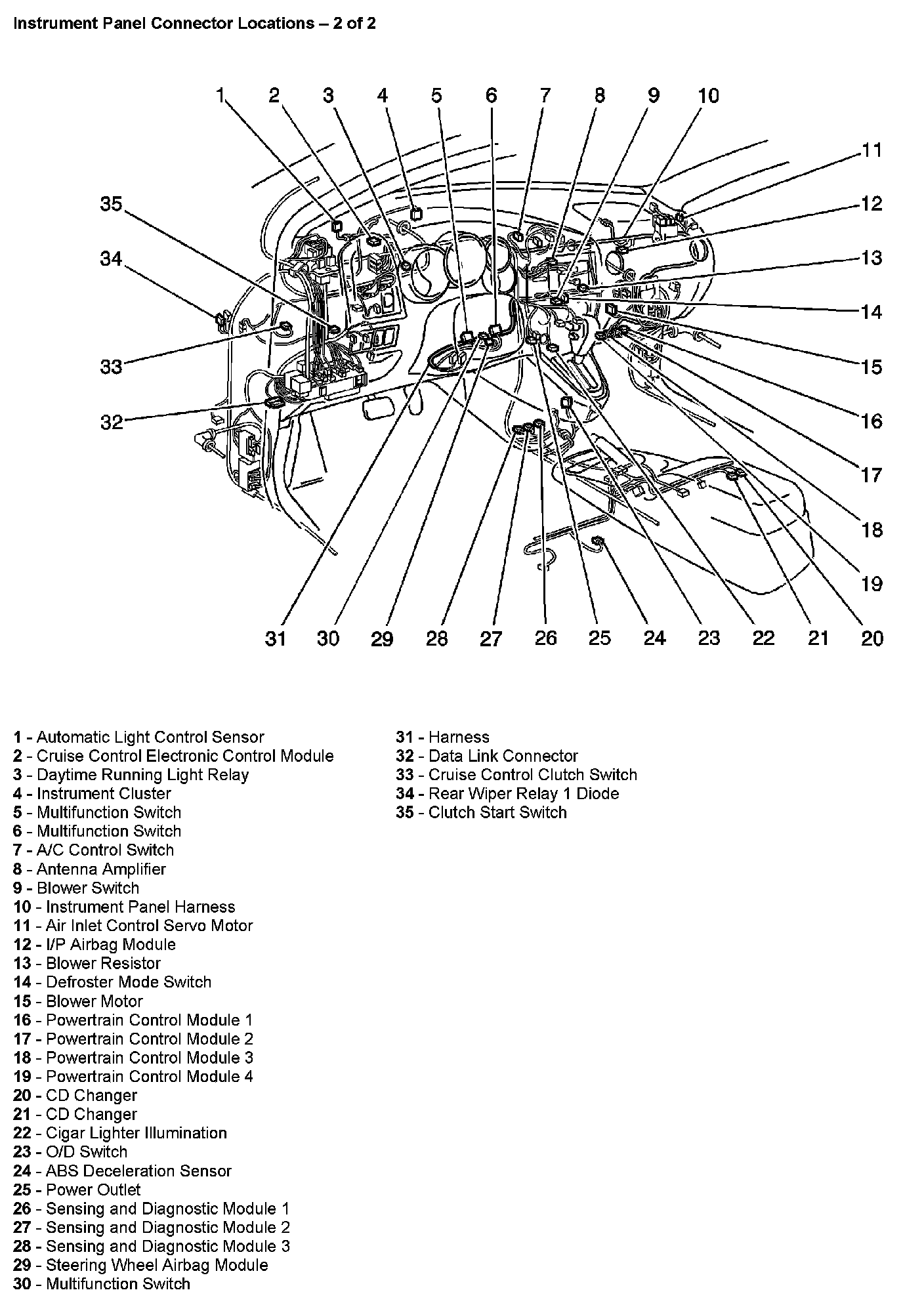 Instrument Panel Connector Locations