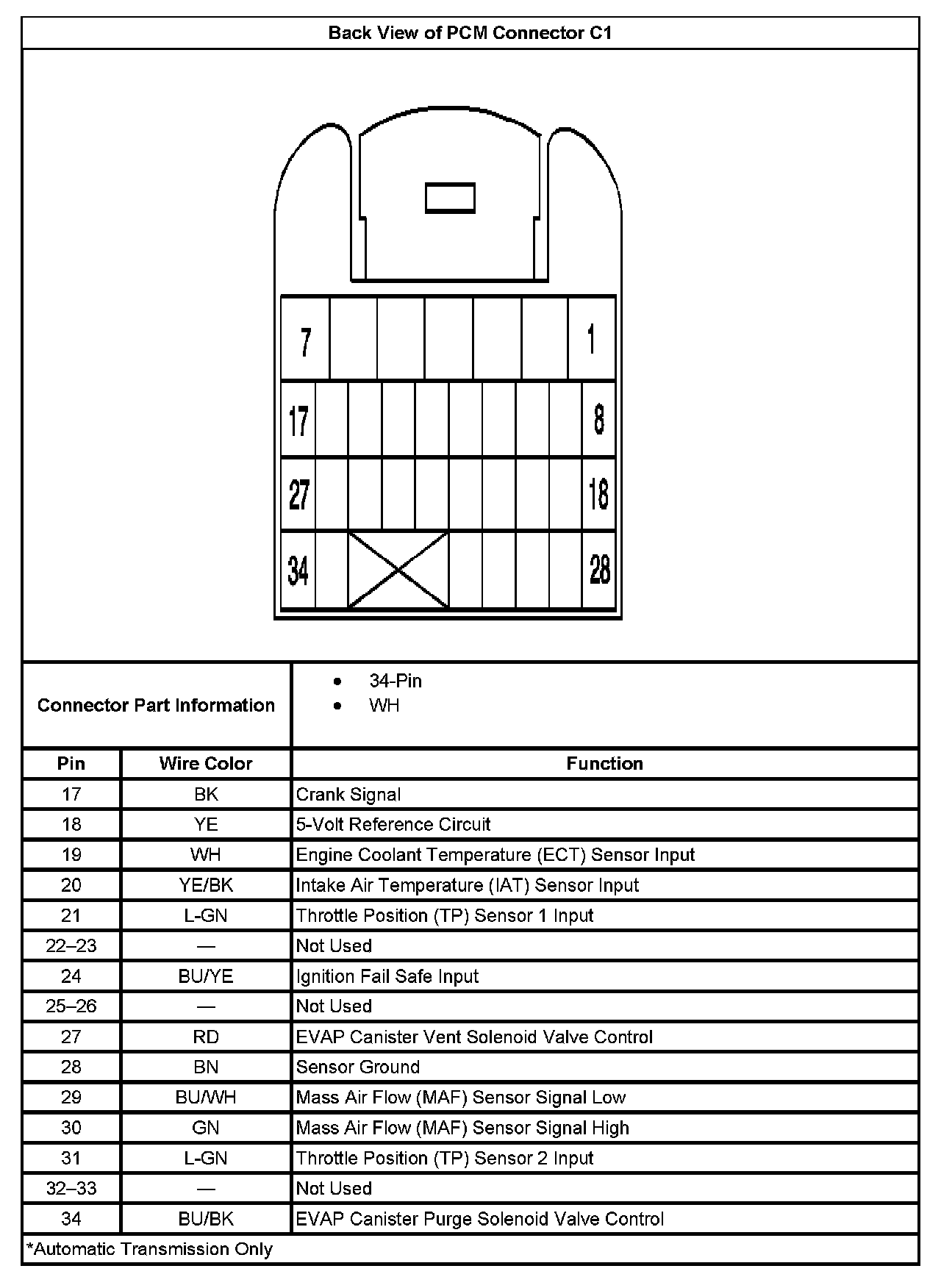 Back View of PCM Connector C1