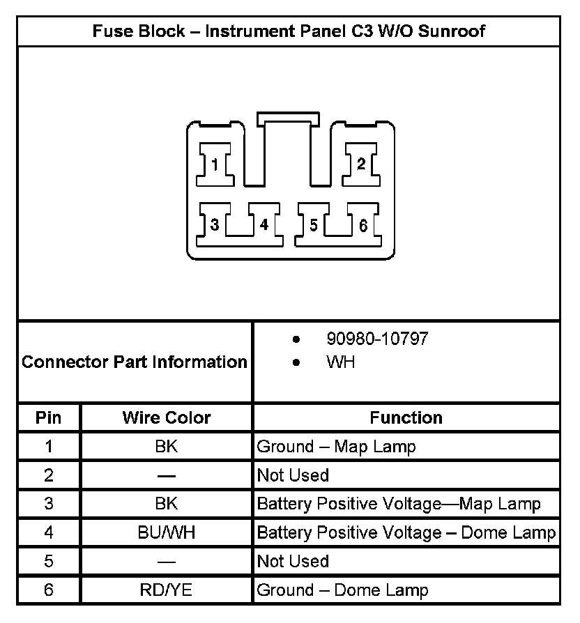 Fuse Block - Instrument Panel C3 Without Sunroof: