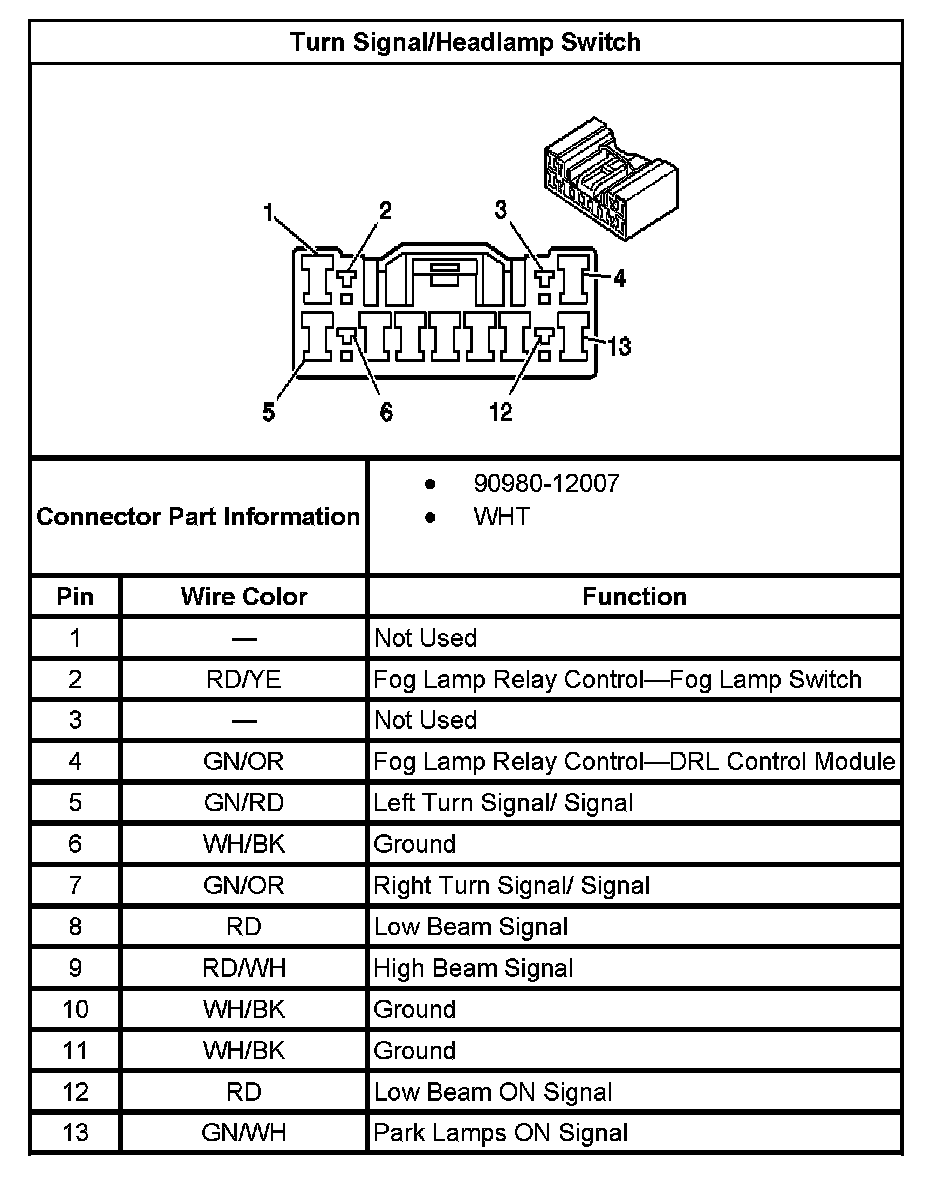 Turn Signal/Headlamp Switch: