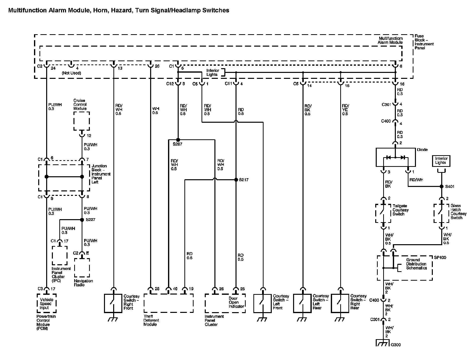Location: The locations for the Connectors, Grounds, Splices, and Grommets shown within these diagrams can be found via their numbers at Vehicle Locations. Locations