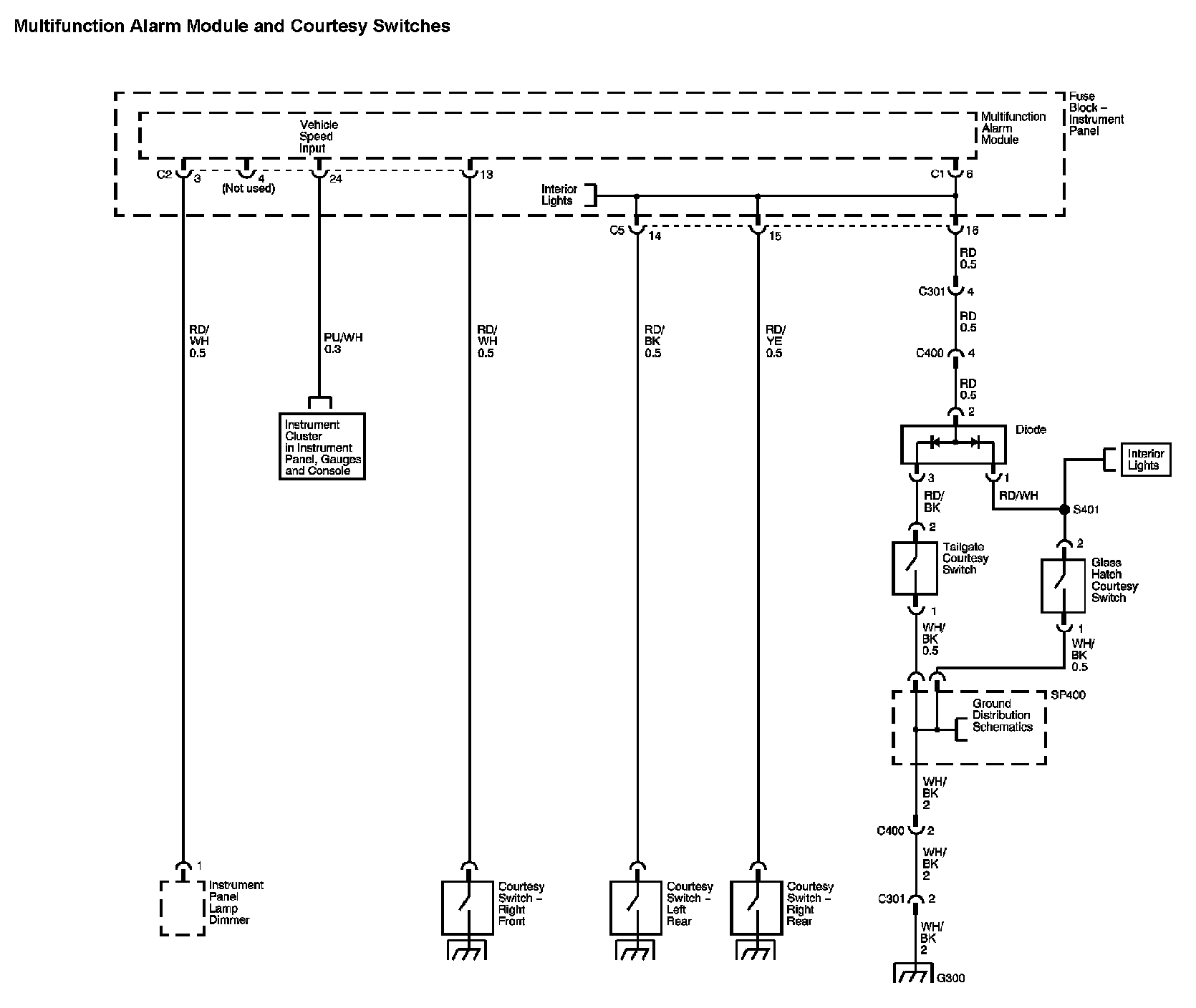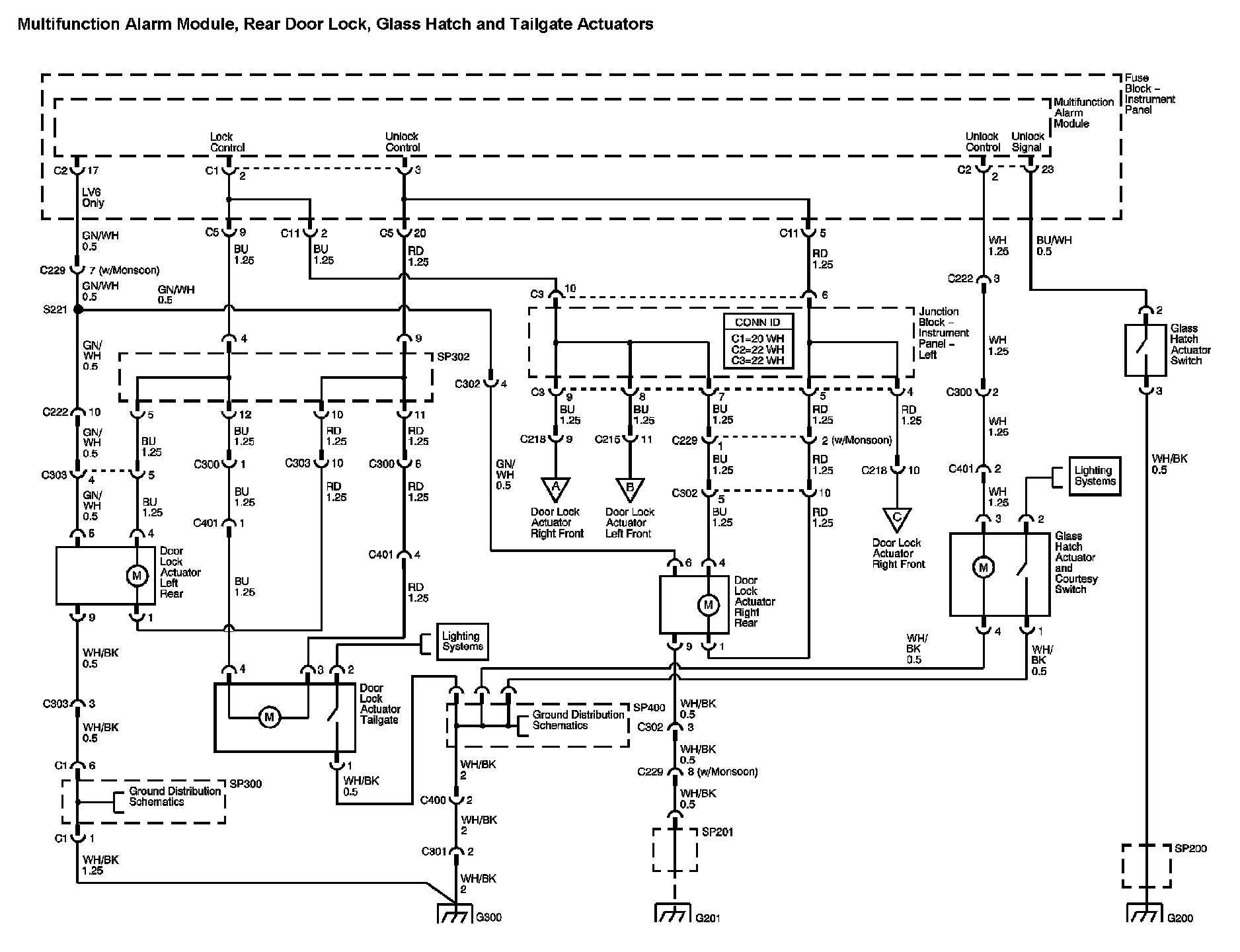 Locations: The locations for the Connectors, Grounds, Splices, and Grommets shown within these diagrams can be found via their numbers at Vehicle Locations. Locations