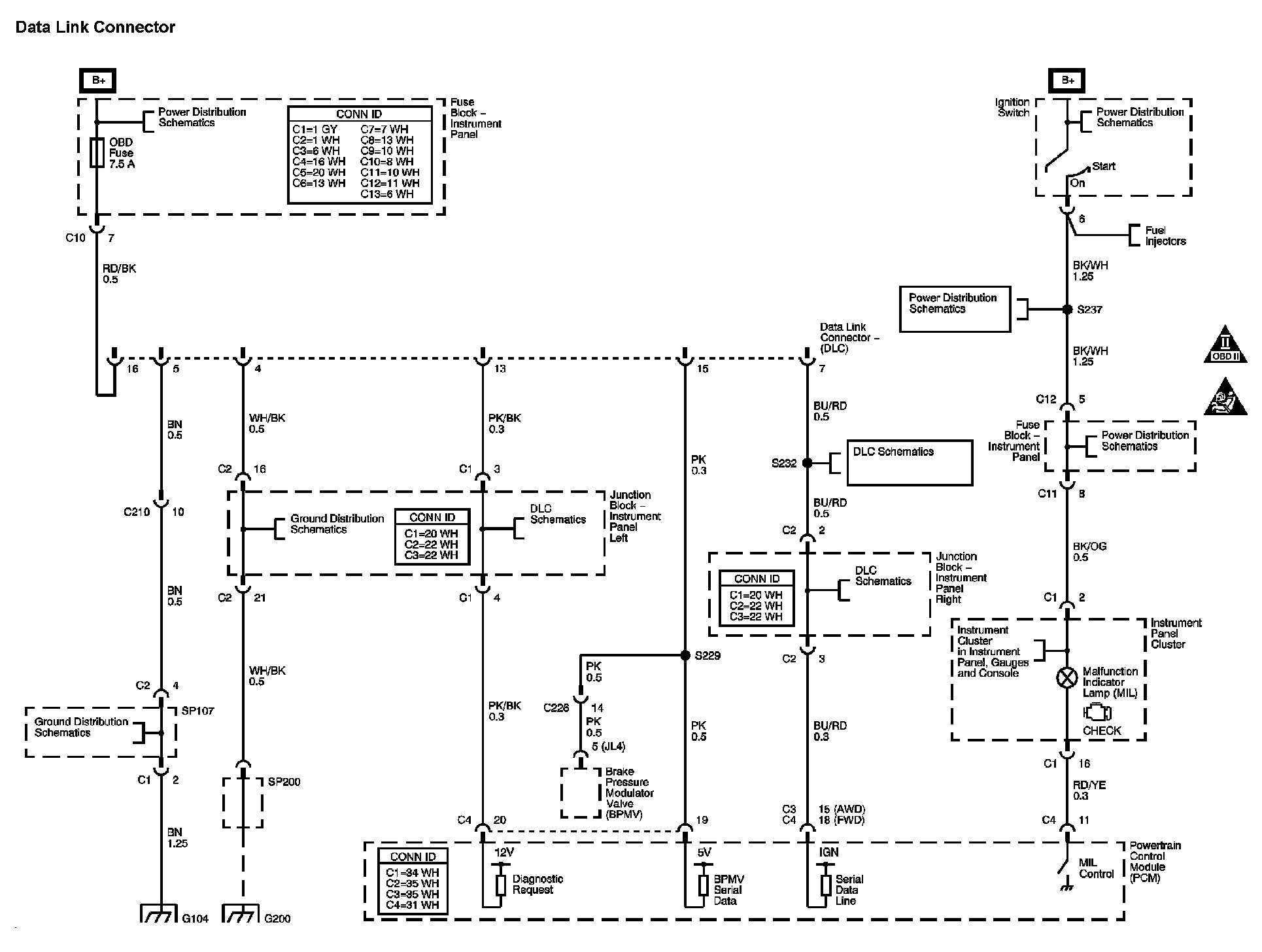 Locations: The locations for the Connectors, Grounds, Splices, and Grommets shown within these diagrams can be found via their numbers at Vehicle Locations. Locations