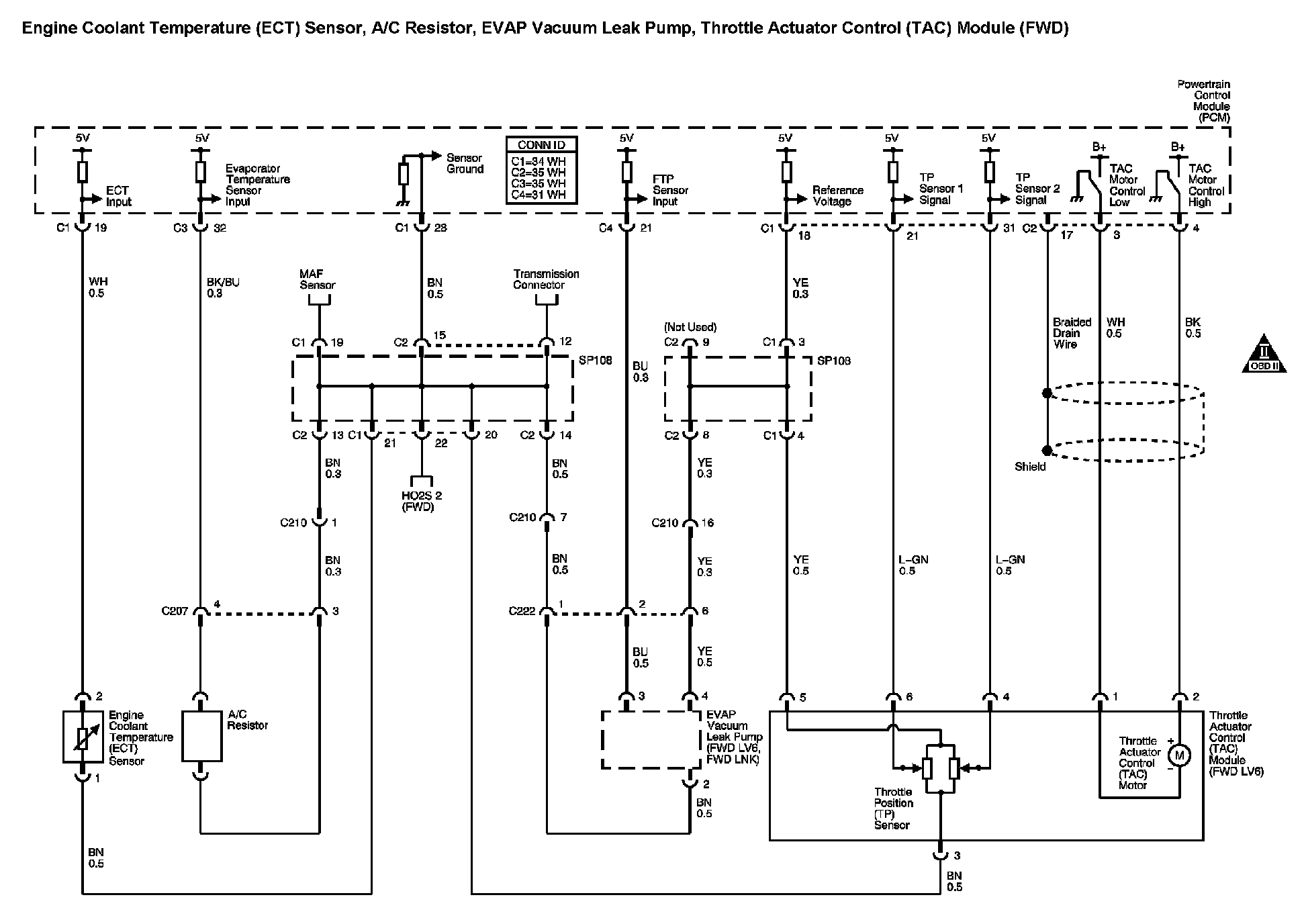 Engine Coolant Temperature (ECT) Sensor, Fuel Tank Pressure (FTP) Sensor, Throttle Actuator Control (TAC) Module (FWD)