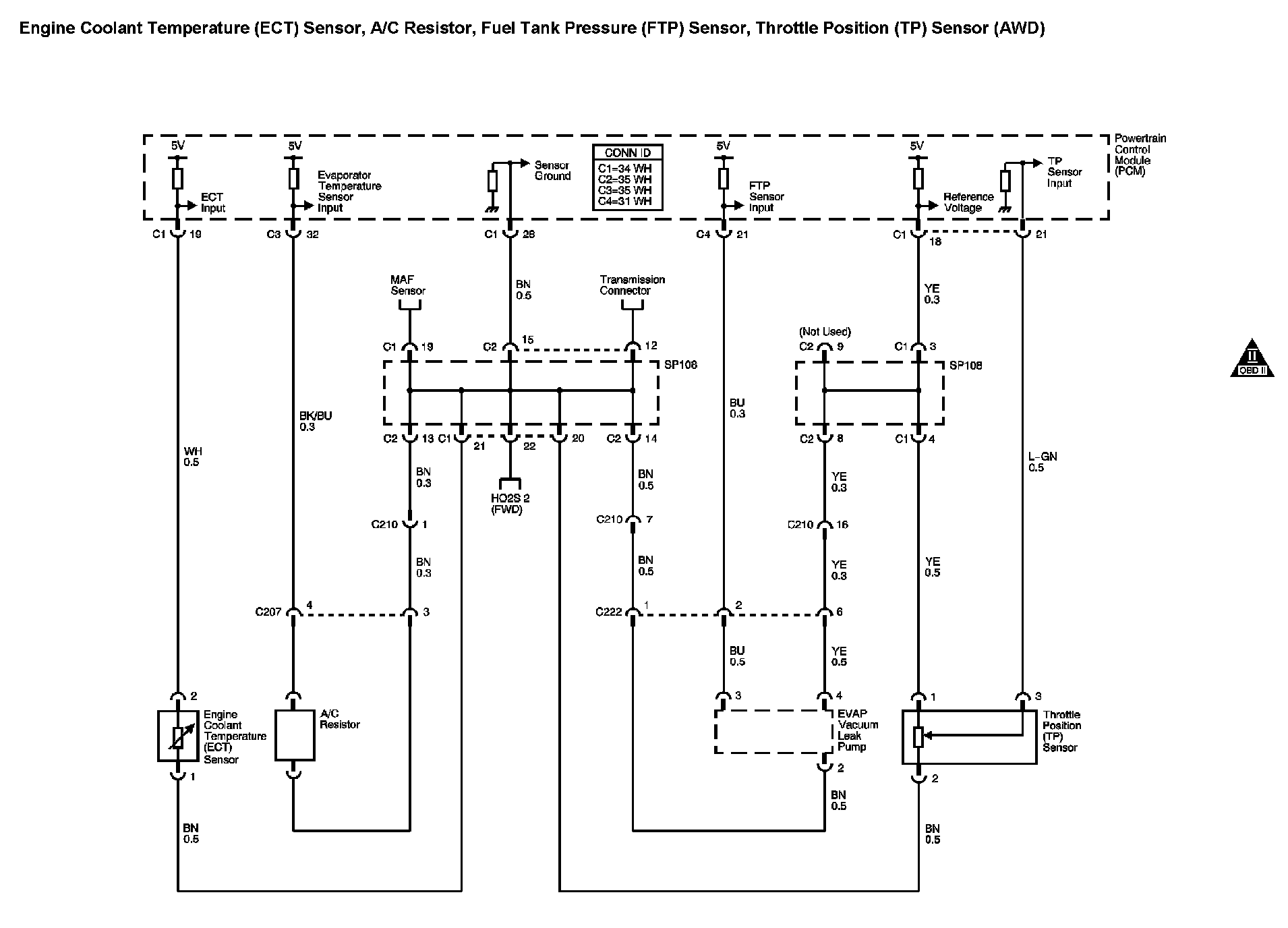 Engine Coolant Temperature (ECT) Sensor, A/C Resistor, Fuel Tank Pressure (FTP) Sensor, Throttle Position (TP) Sensor (AWD)