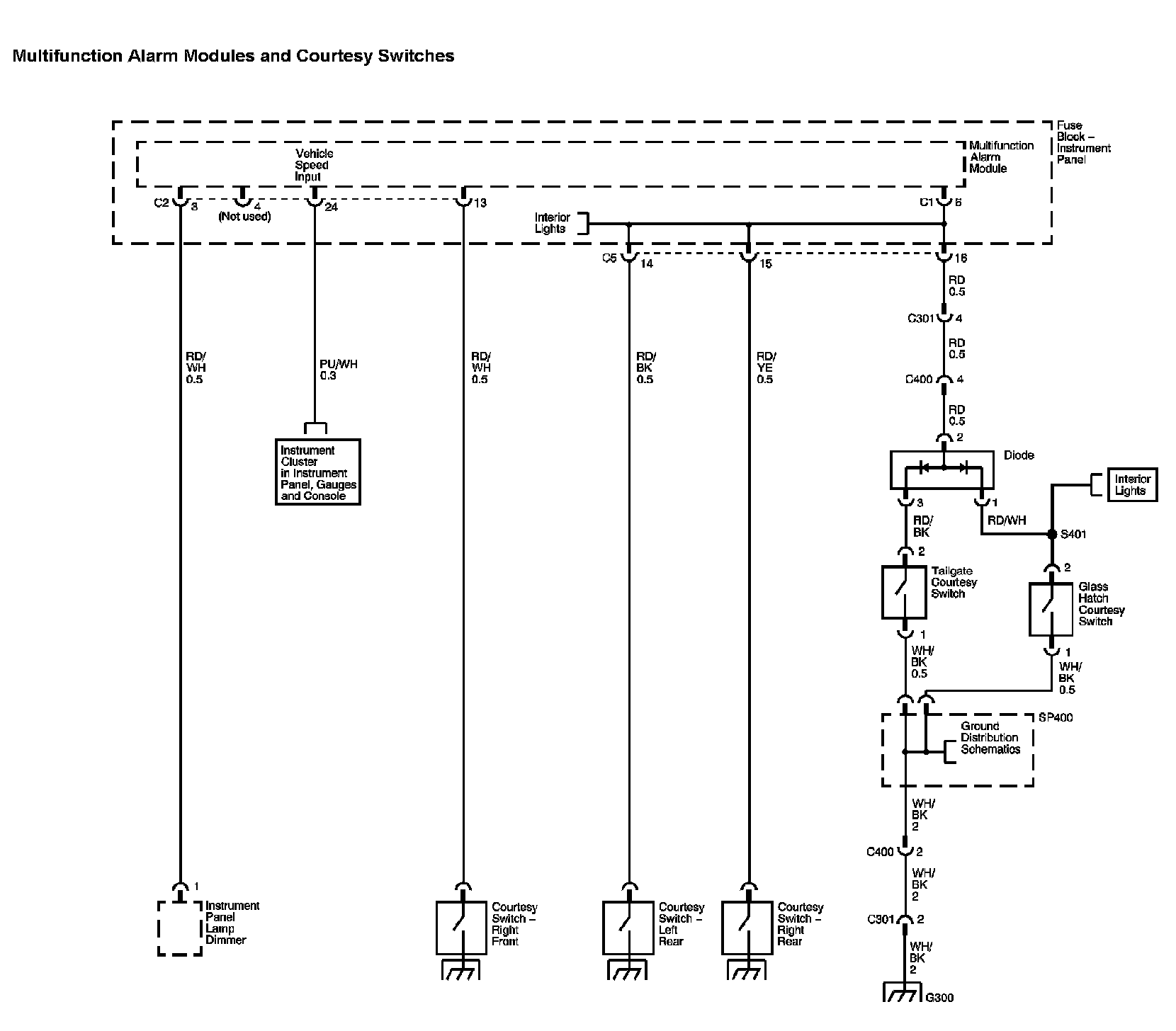 Locations: The locations for the Connectors, Grounds, Splices, and Grommets shown within these diagrams can be found via their numbers at Vehicle Locations. Locations