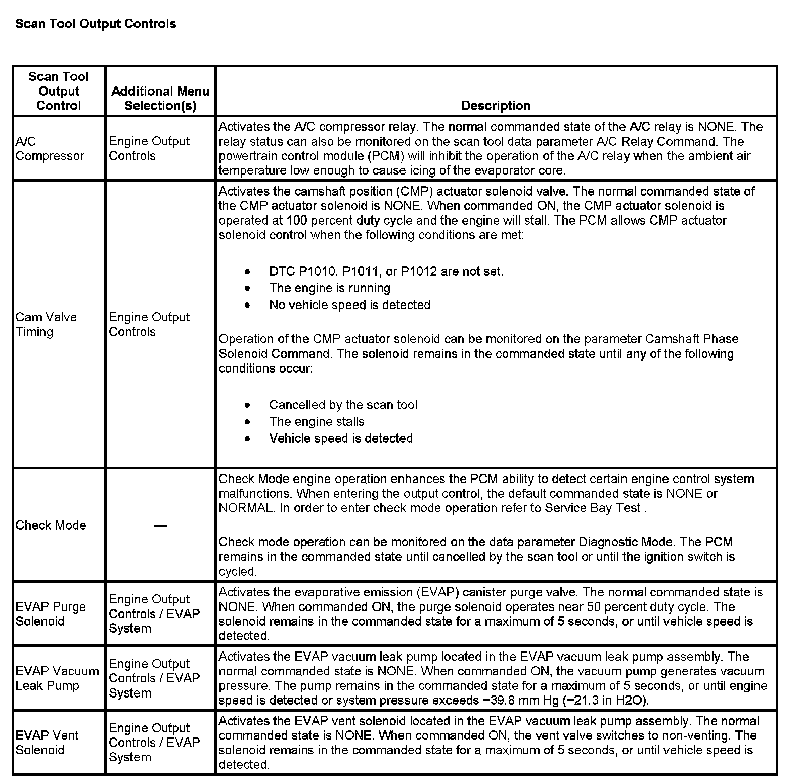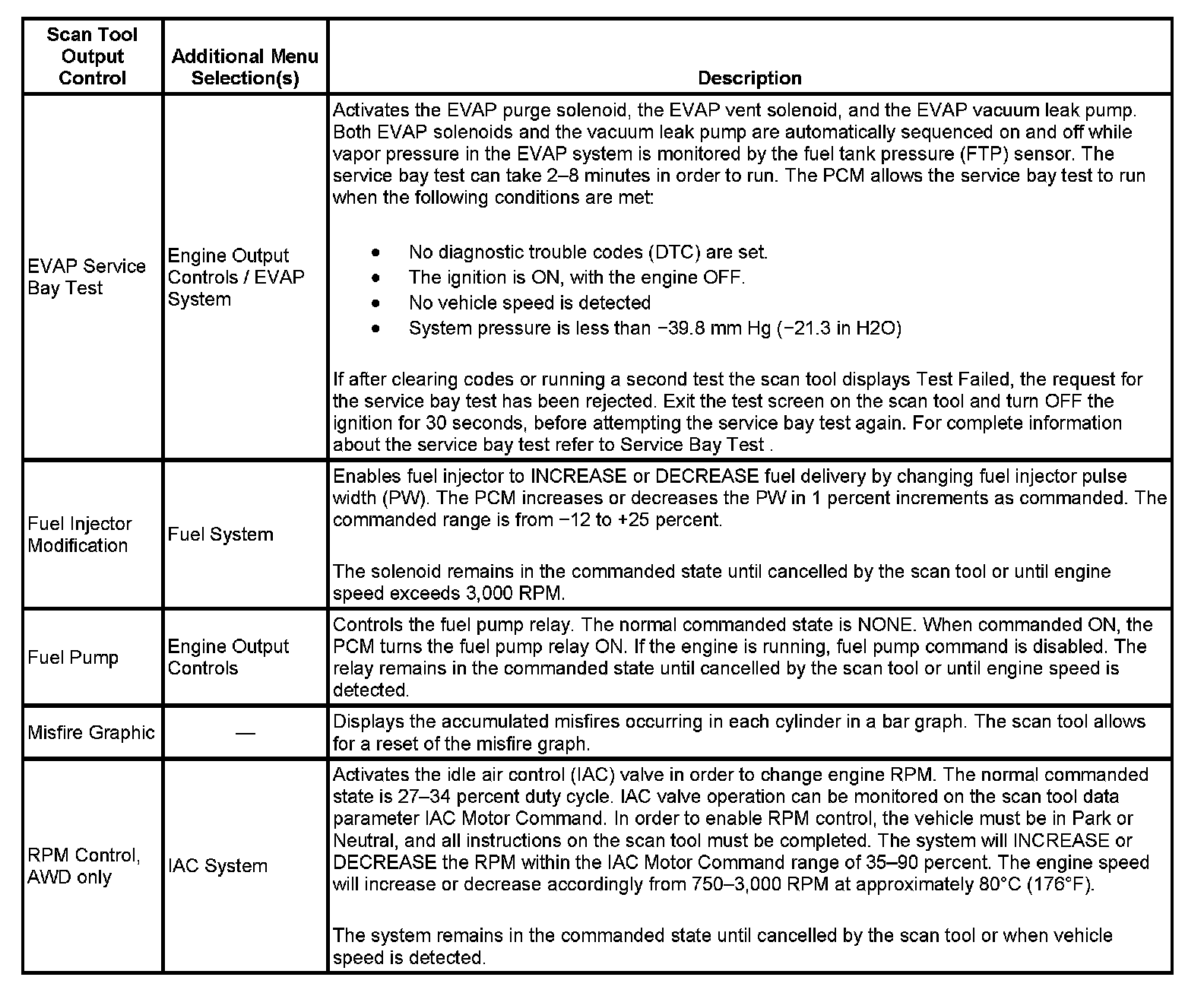 Scan Tool Output Controls