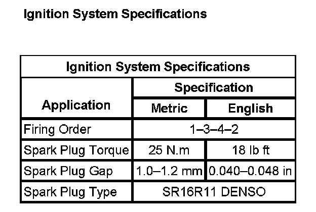 Ignition System Specifications: