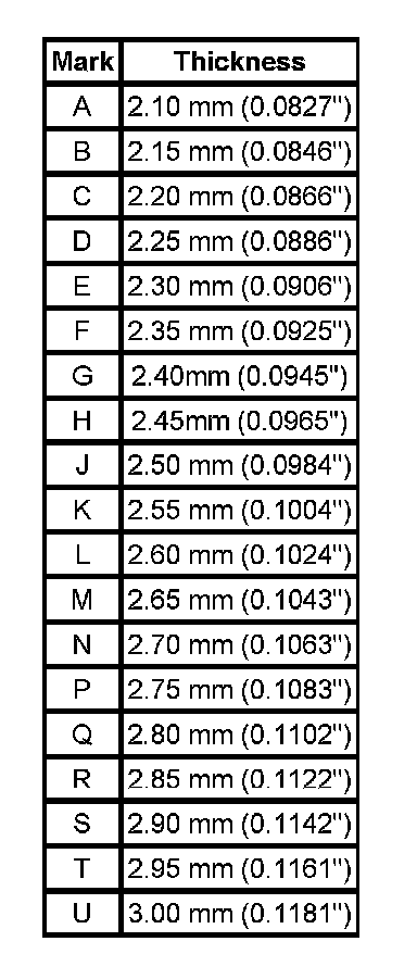Transaxle Specifications (Selective Bearing Shim Table)