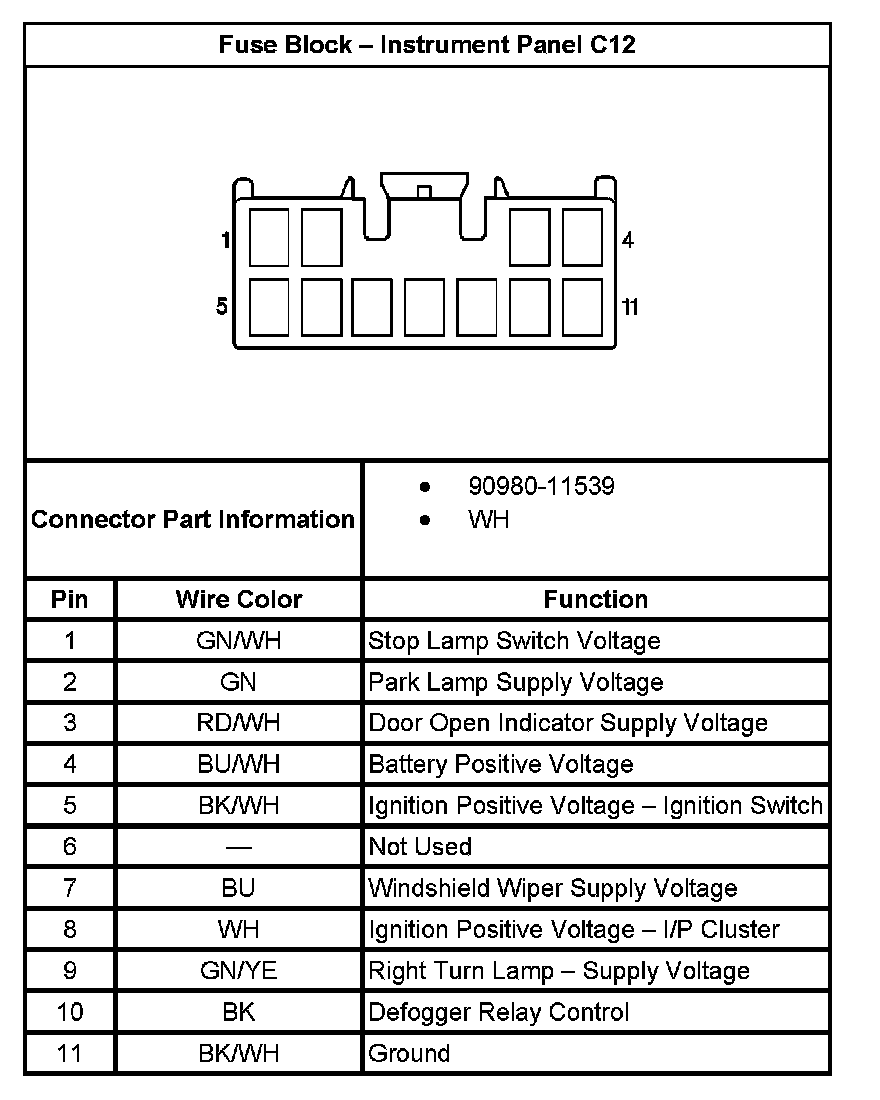 Fuse Block - Instrument Panel C12: