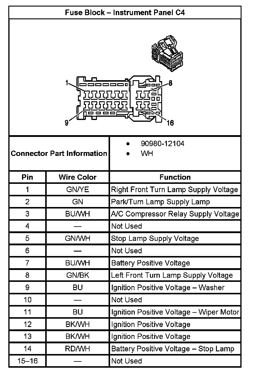 Fuse Block - Instrument Panel C4: