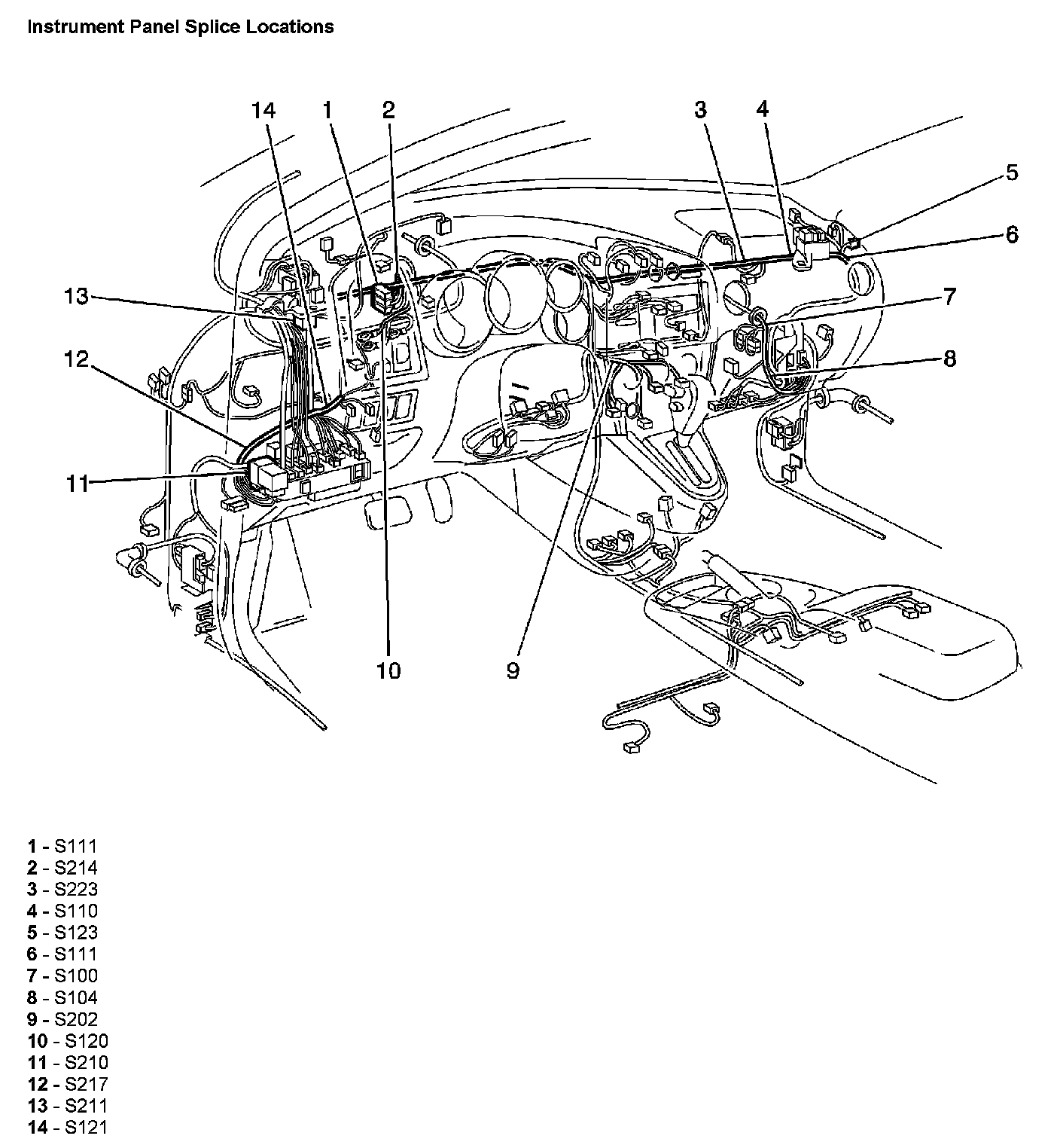 Instrument Panel Splice Locations: