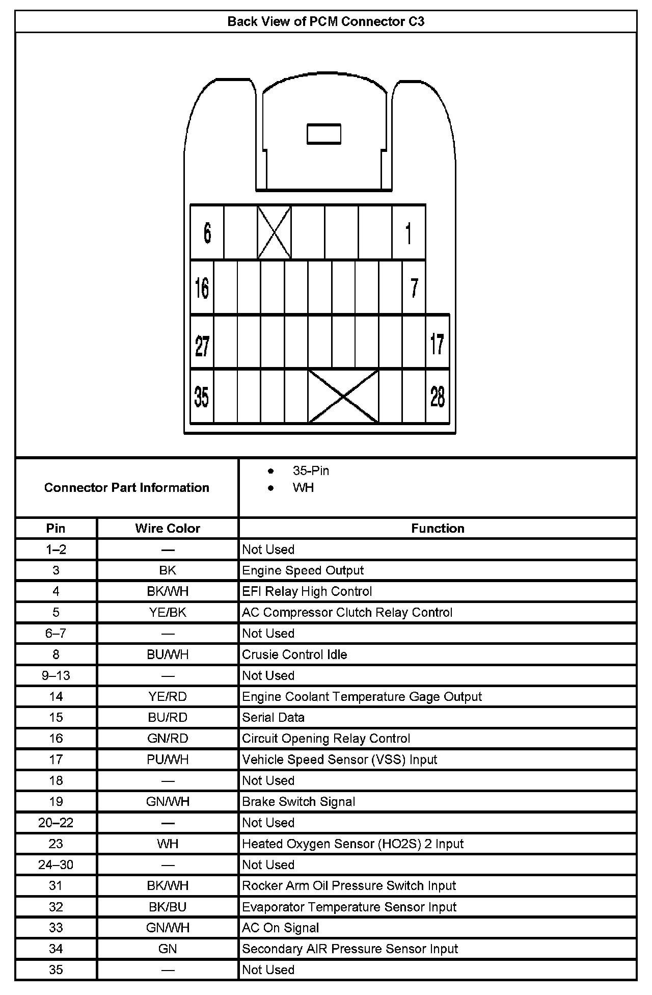Back View Of PCM Connector C3: