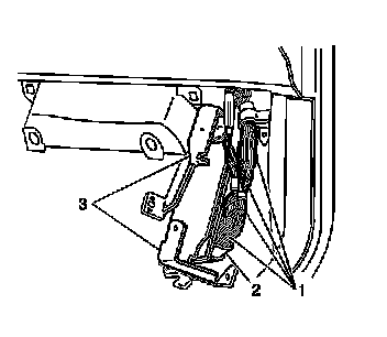 2. Remove the two retainers from the PCM close out panel (1) below the instrument panel (IP) compartment door.