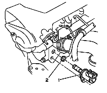 8. Disconnect the electrical connector (1) from the camshaft position (CMP) actuator solenoid valve (2).