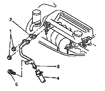 4. Remove the one bolt (5) that secures the lower portion of the breather pipe (3) of the positive crankcase ventilation (PCV) system.