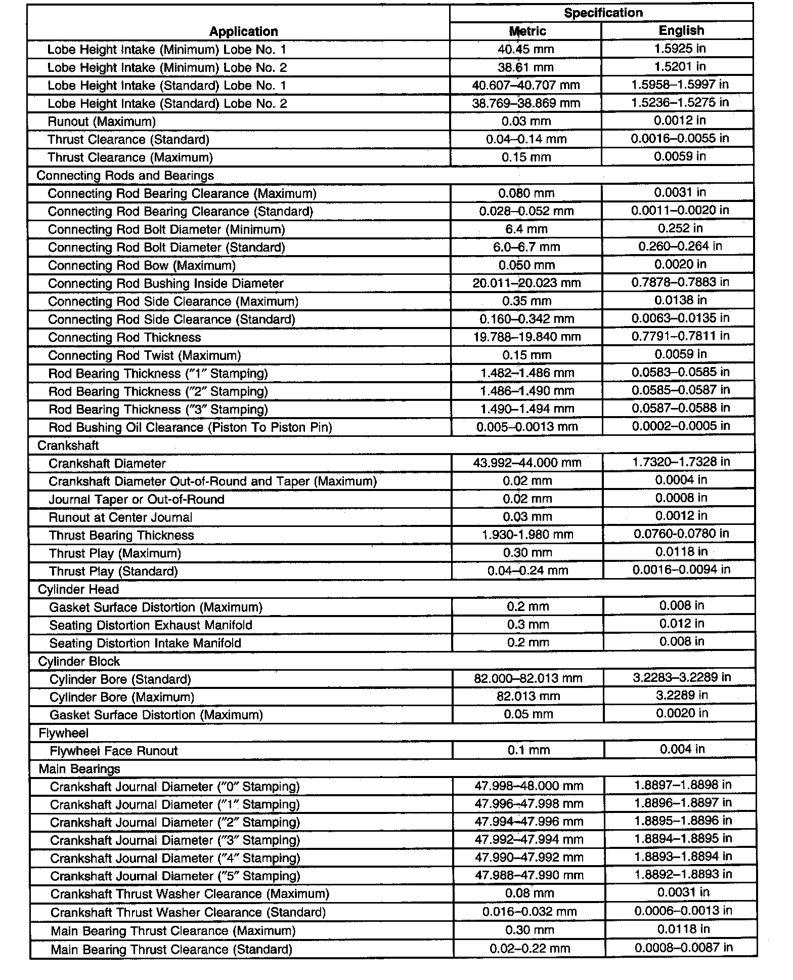 Engine General Specifications & Service Limits
