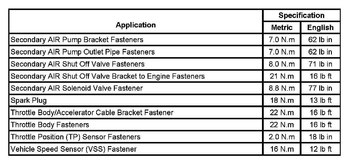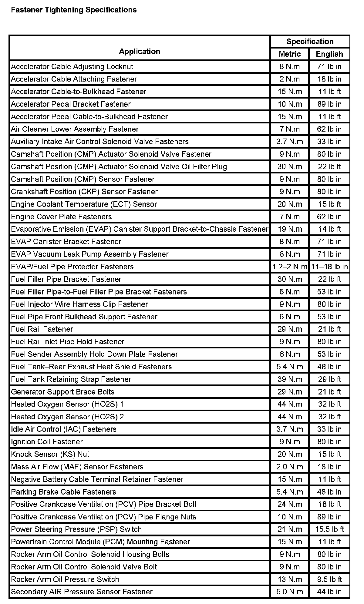 Fastener Tightening Specifications (Part 1):