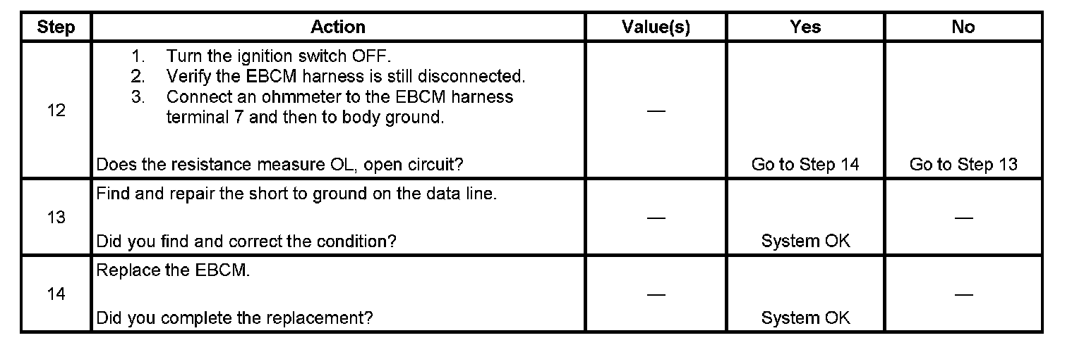 ^ Loss of battery voltage at EBCM terminals 9 and/or 25