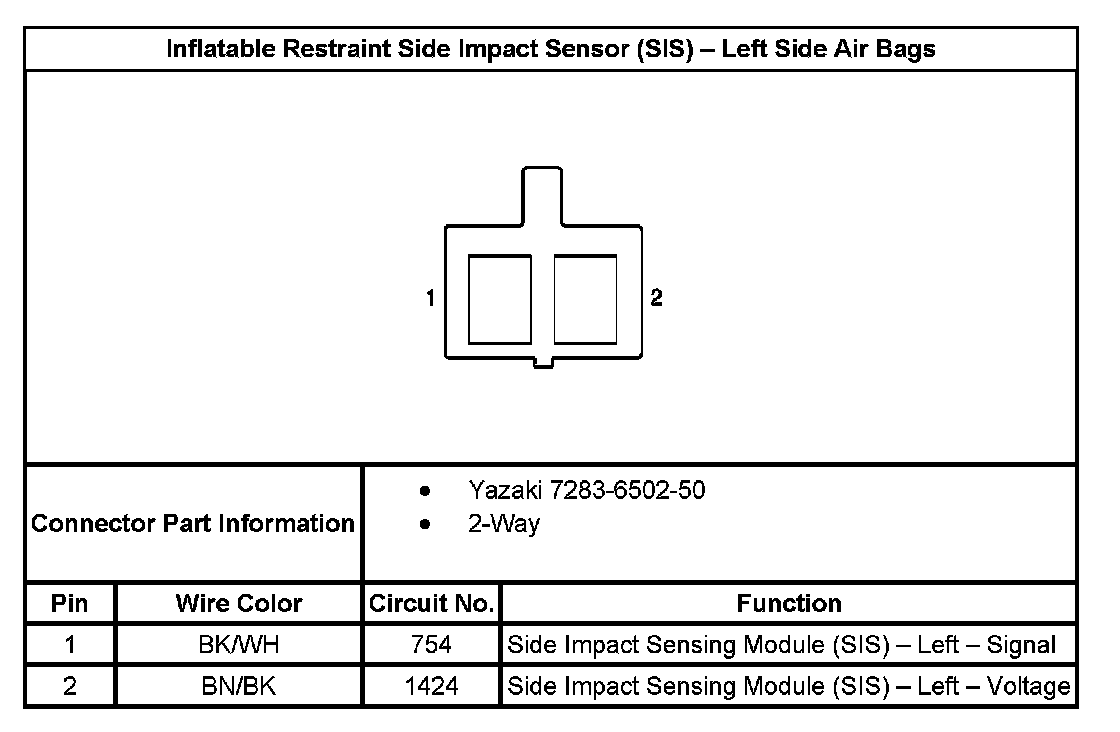 Inflatable Restraint Side Impact Sensor (SIS) - Left Side Air Bags: