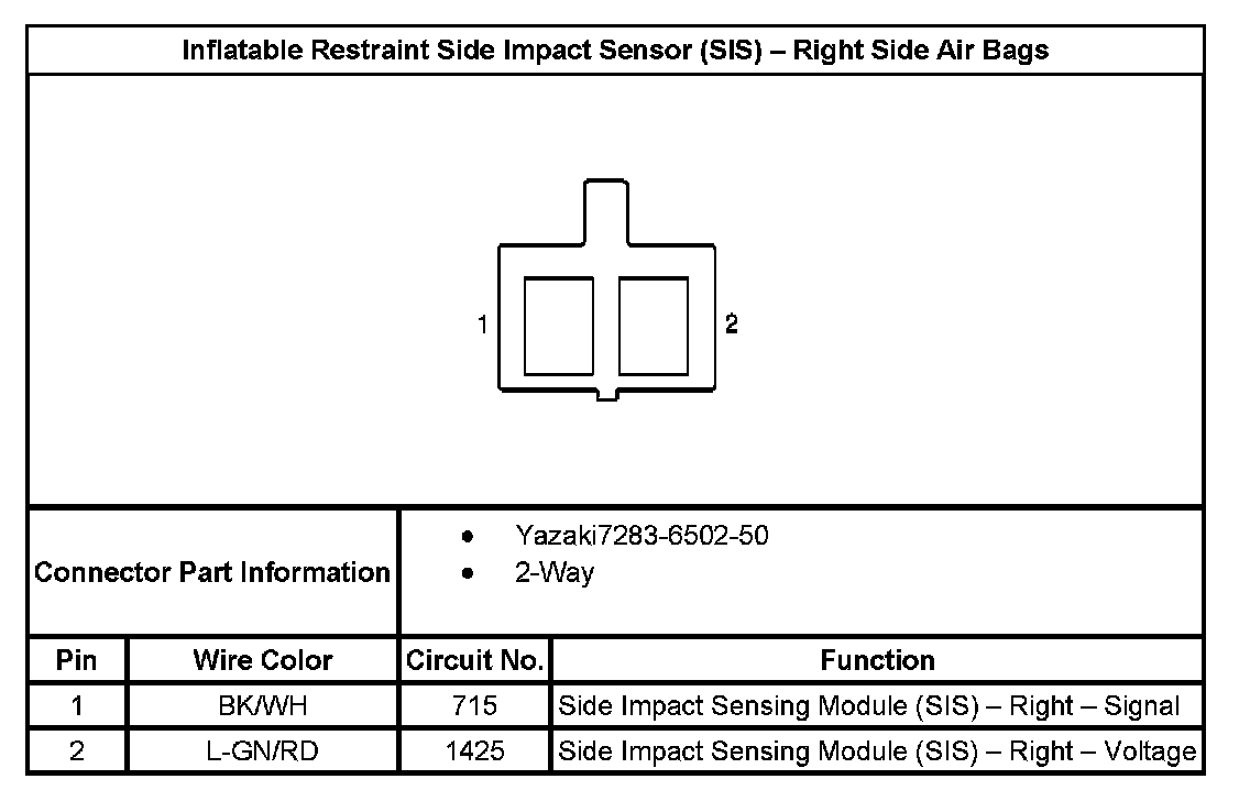 Inflatable Restraint Side Impact Sensor (SIS) - Right Side Air Bags: