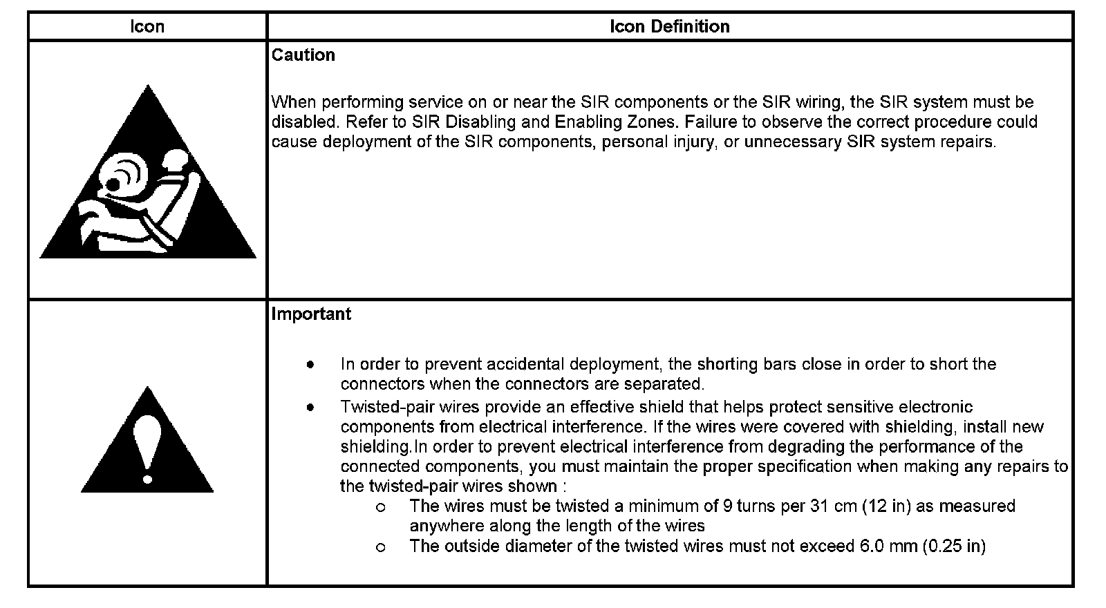 Air Bag System Schematic Icons