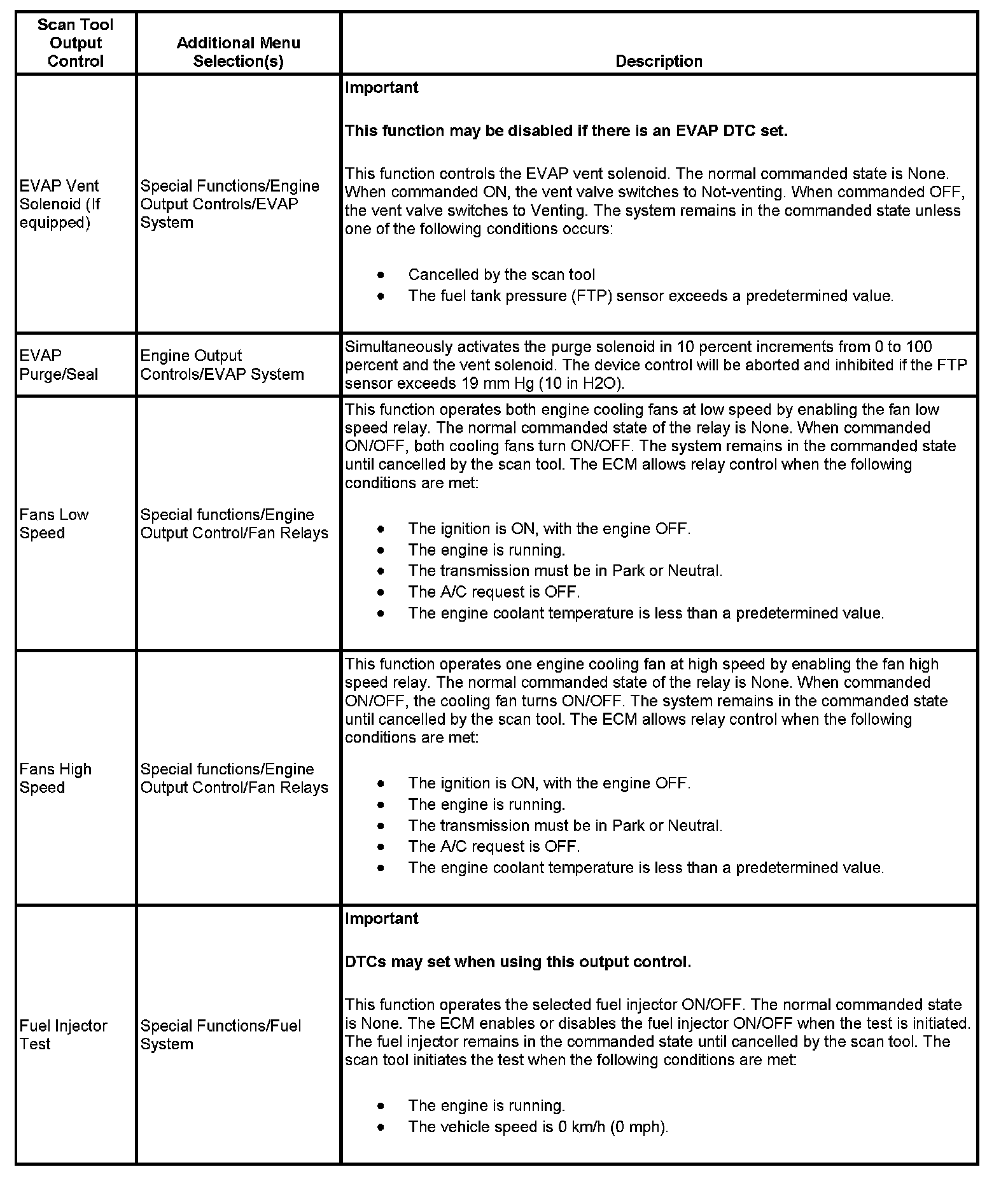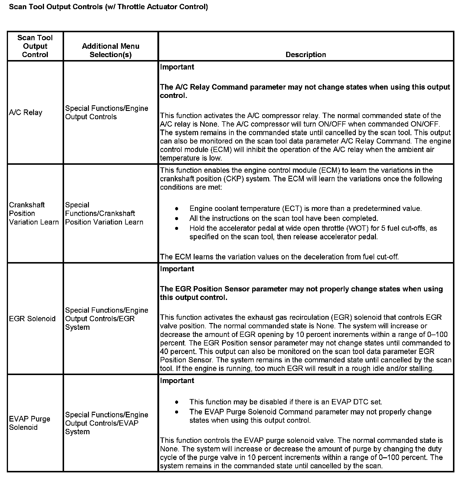 Scan Tool Output Controls (With Throttle Actuator Control)