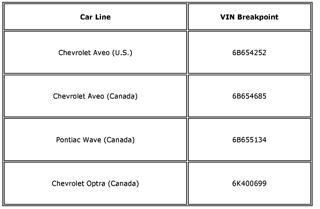 Built Prior To and Including the Following VIN Breakpoints: