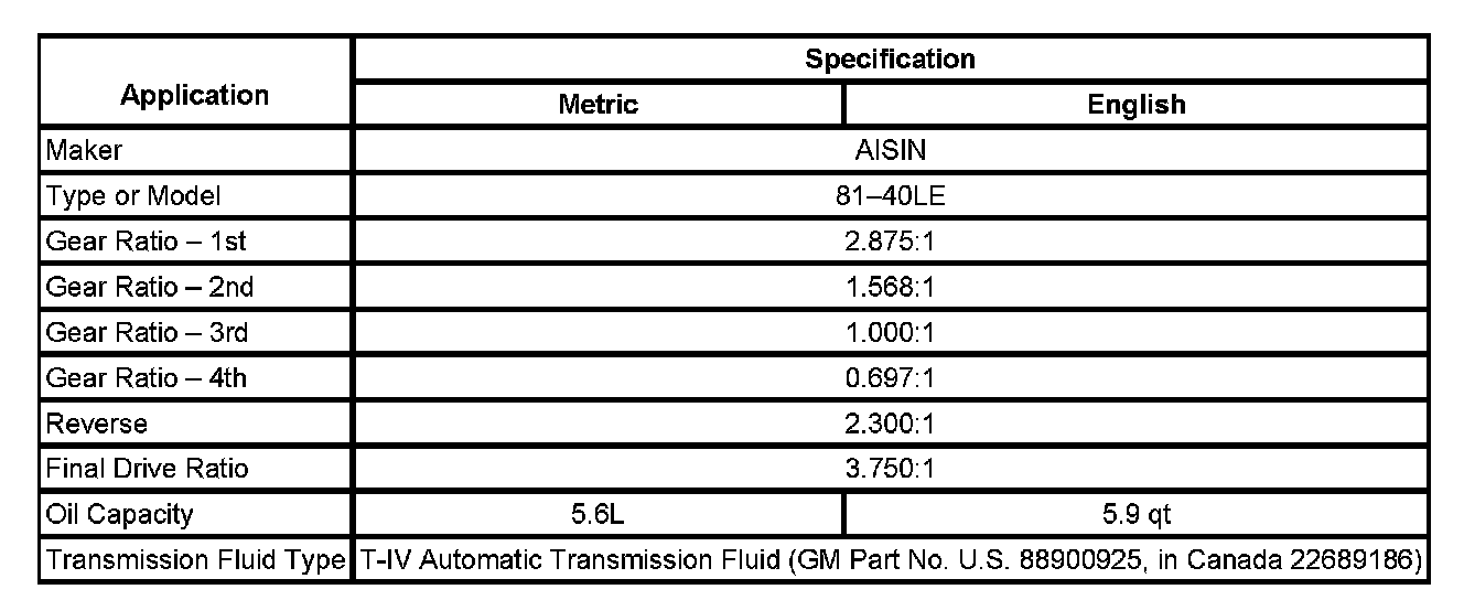Transmission General Specifications: