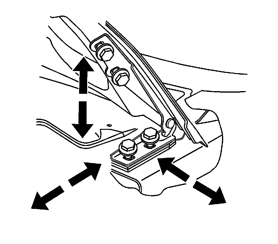 1. Loosen the hinge to body bolts to adjust the hood fore and aft, and cross-vehicle. Position the hood as needed.