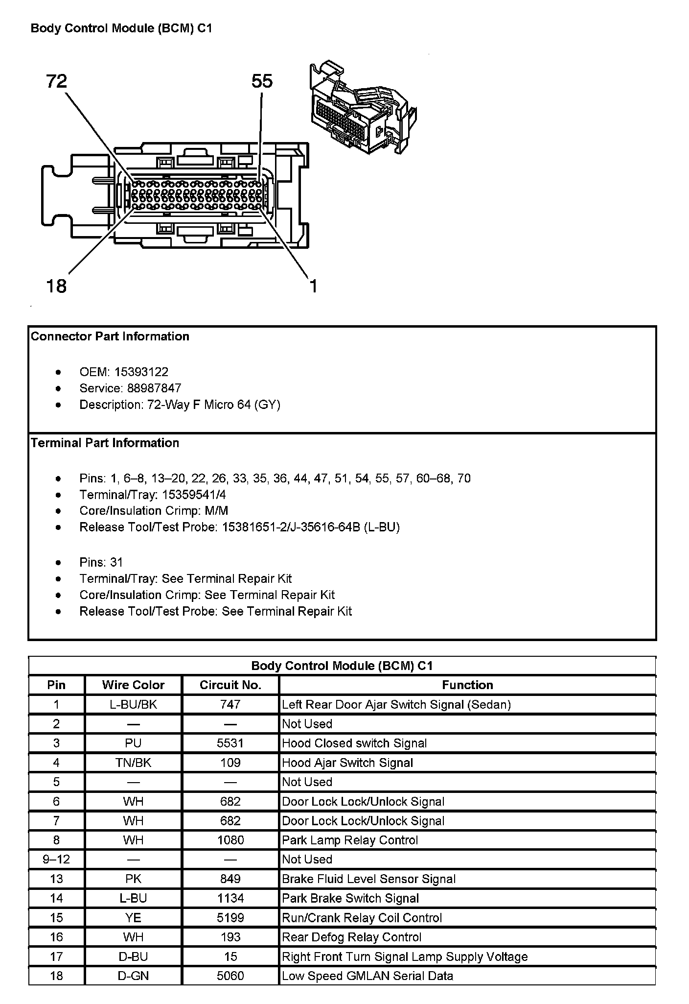 g � Body Control Module (BCM) C1 (Pin 1 To 18):