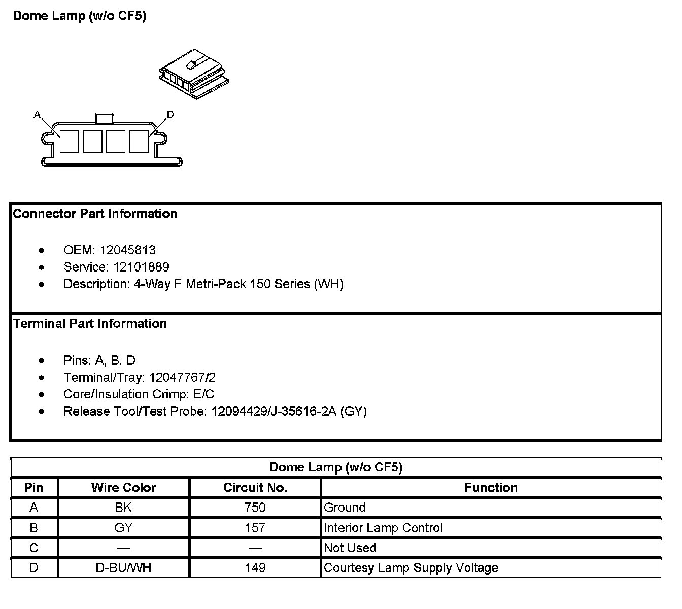 Dome Lamp (Without RPO Code CF5):