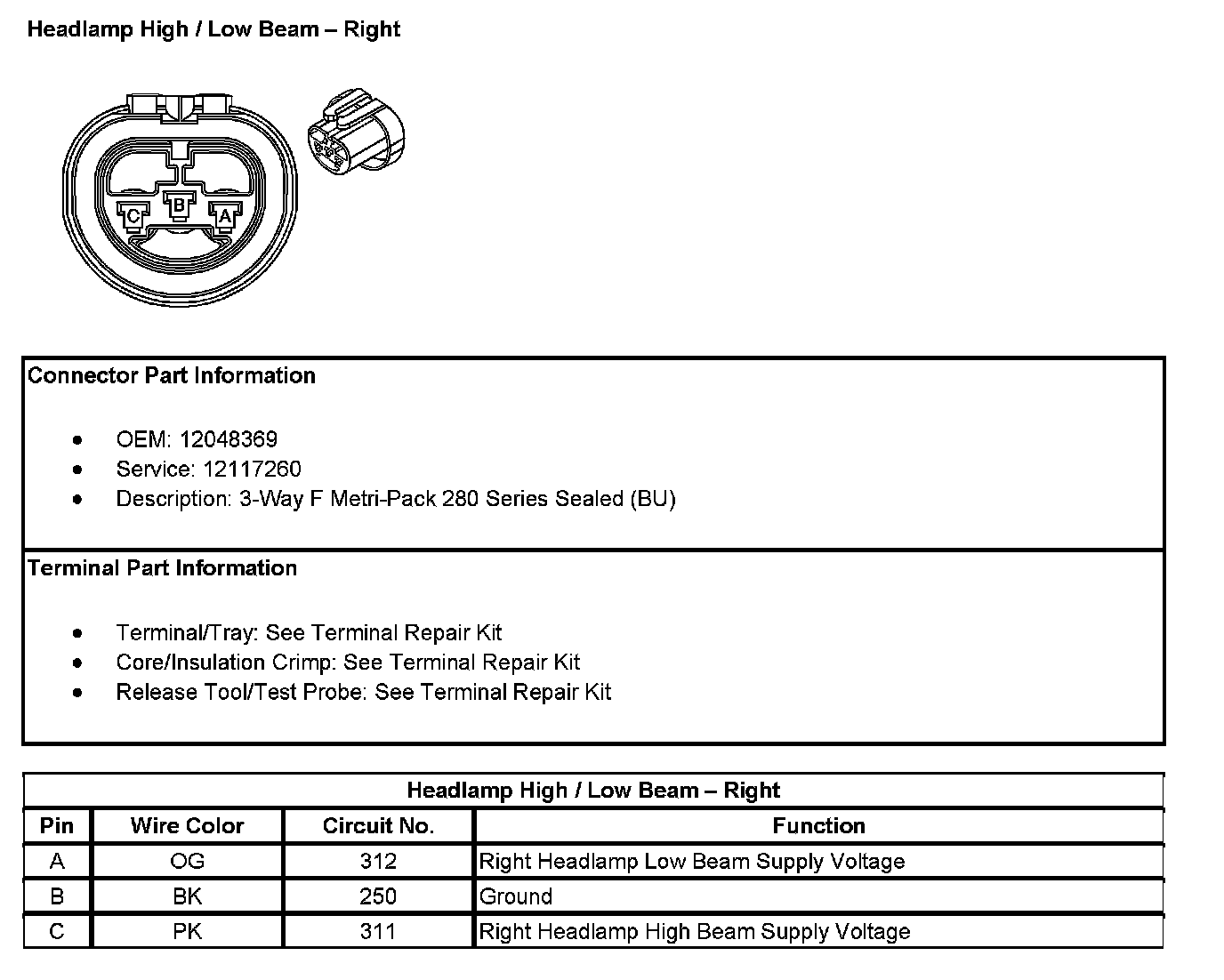 Headlamp High / Low Beam - Right: