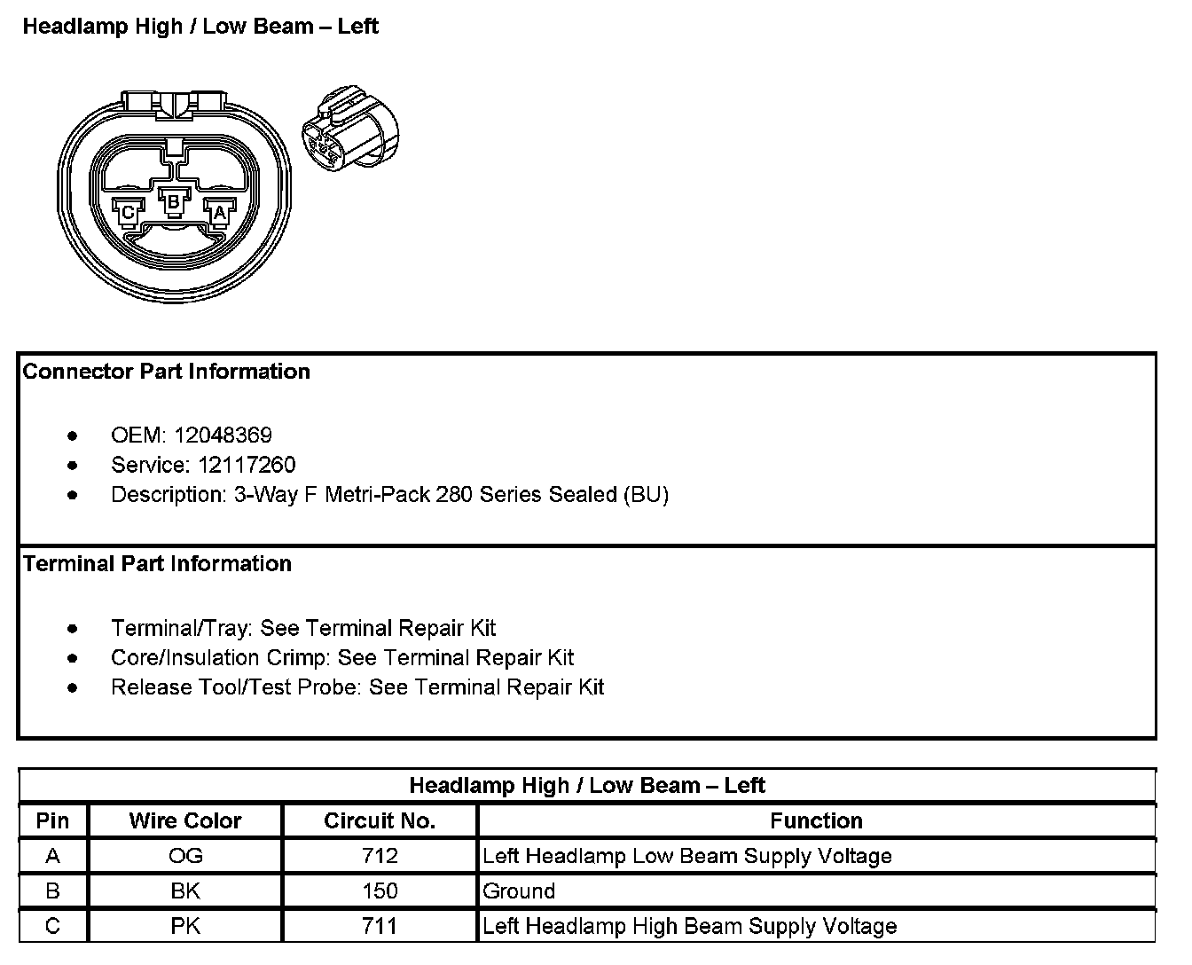 Headlamp High / Low Beam - Left: