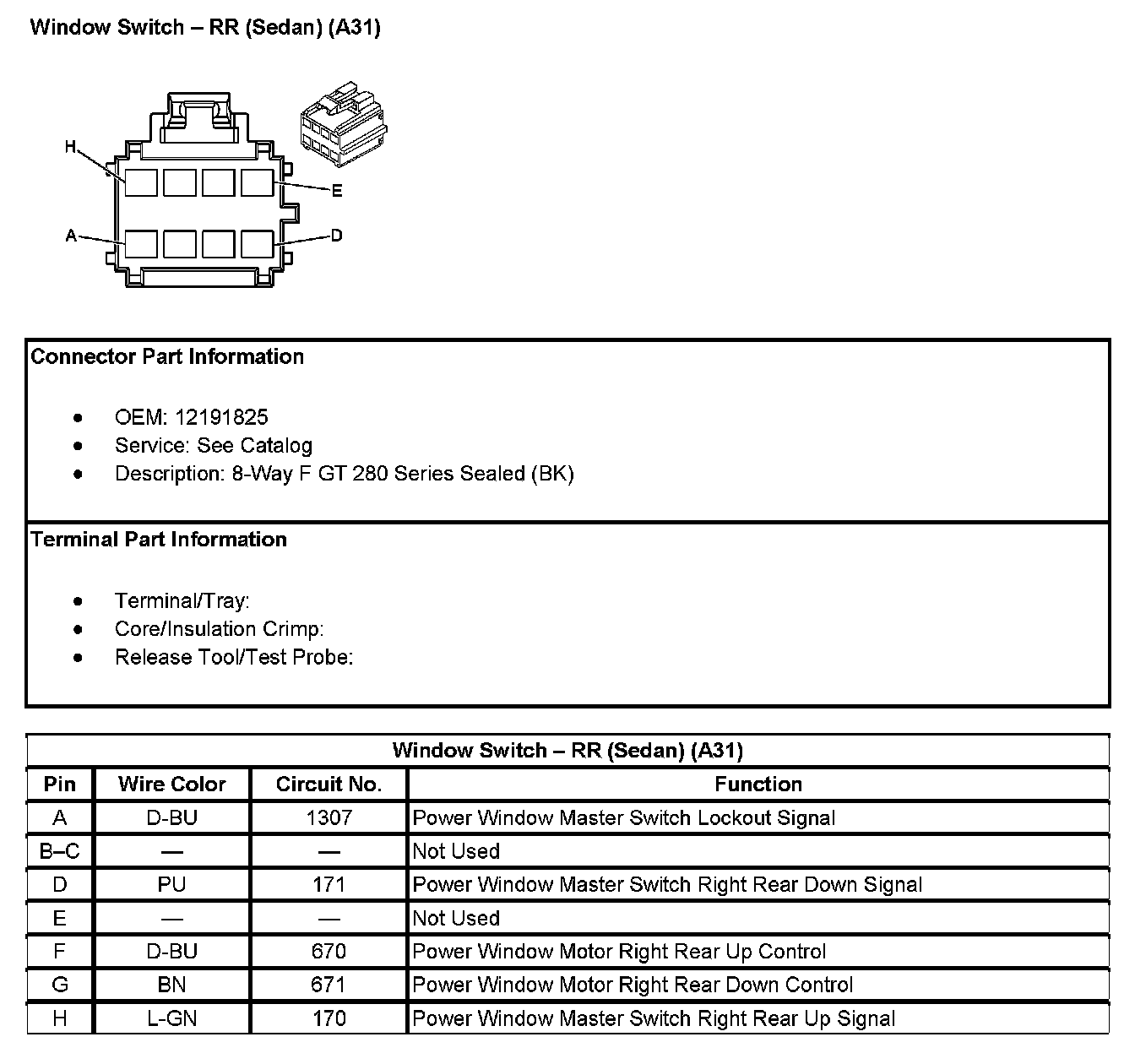 Window Switch - RR (Sedan) (With RPO Code A31):