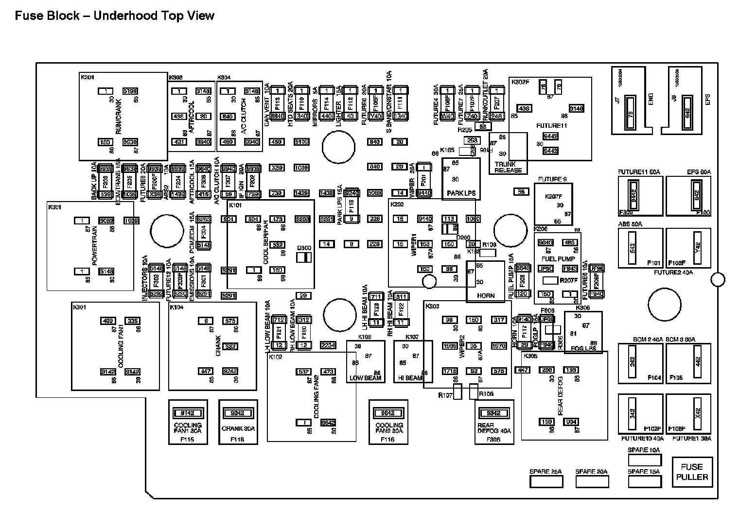 Fuse Block - Underhood Bottom View: