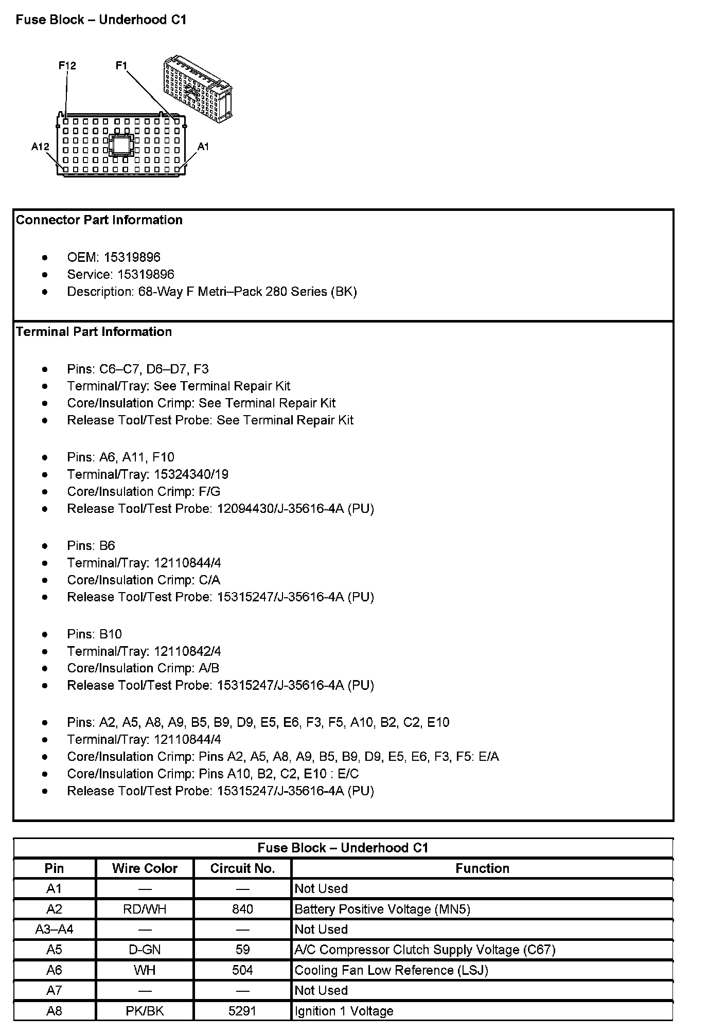 Fuse Block - Underhood C1 (Pin A1 To A8):