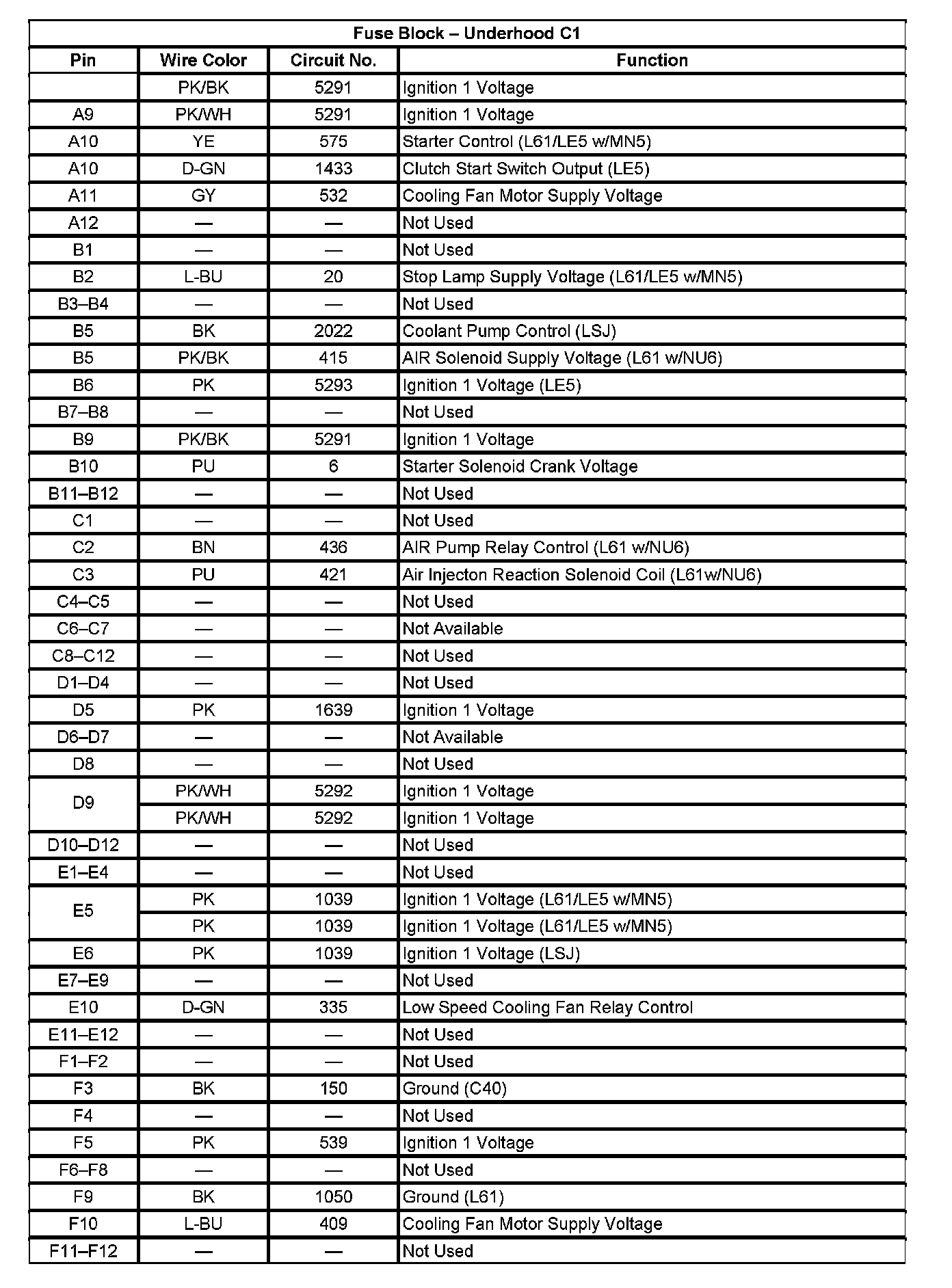 Fuse Block - Underhood C1 (Pin A9 To F12):