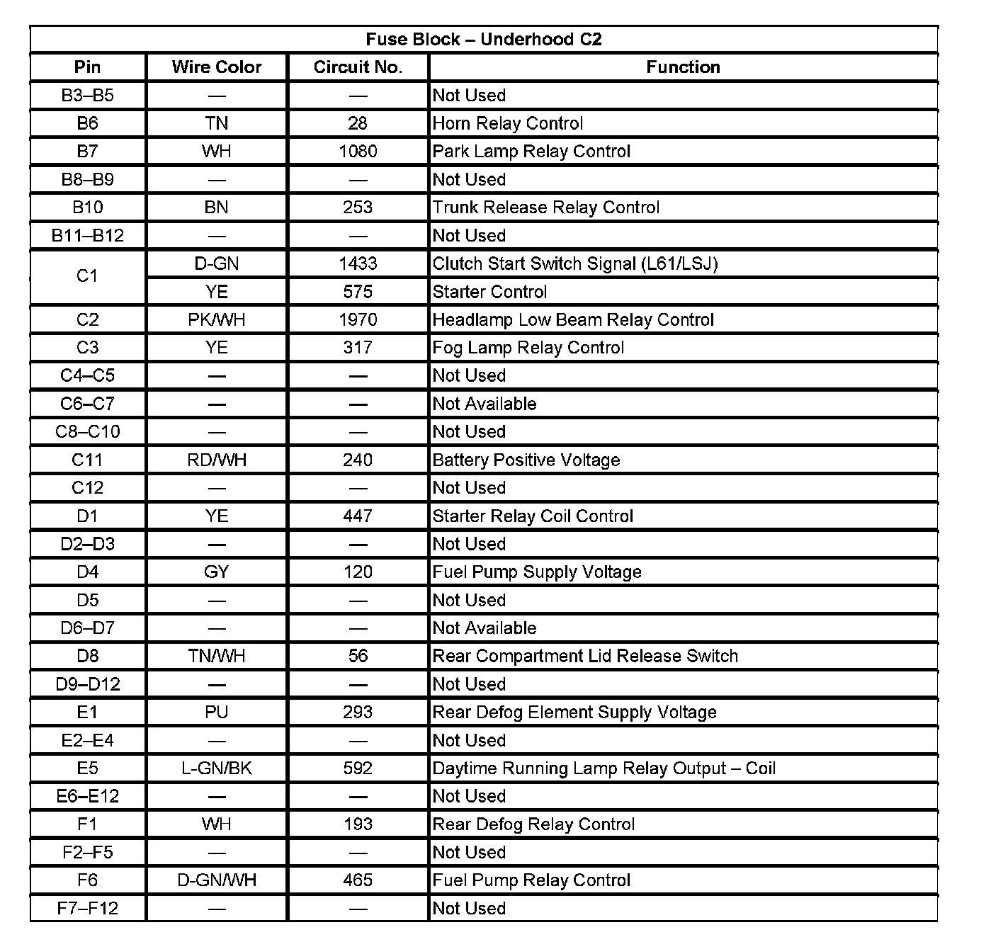 Fuse Block - Underhood C2 (Pin B3 To F12):