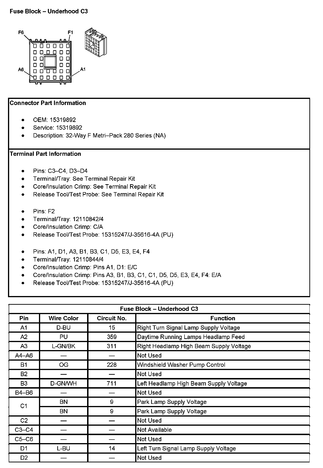 Fuse Block - Underhood C3 (Pin D3 To F6):