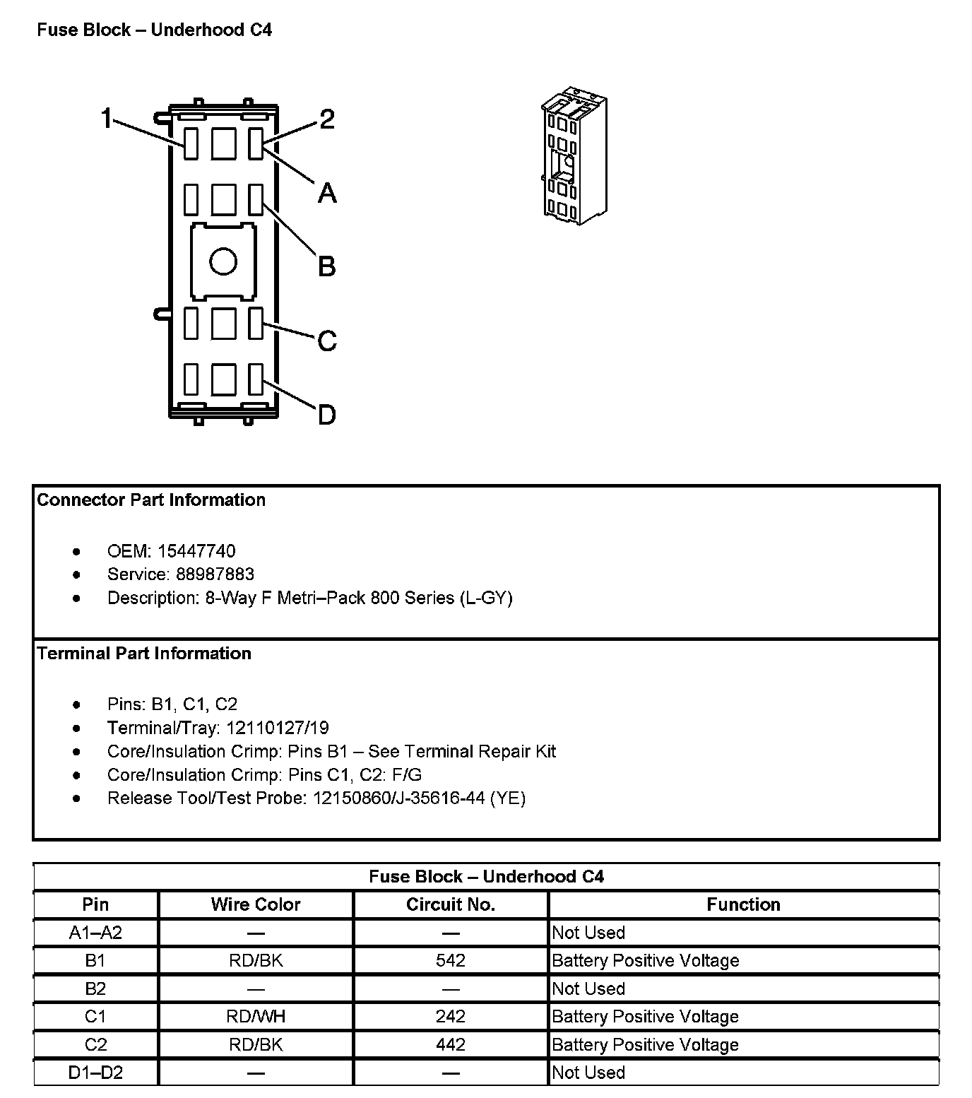 Fuse Block - Underhood C4 (Pin A1 To D2):