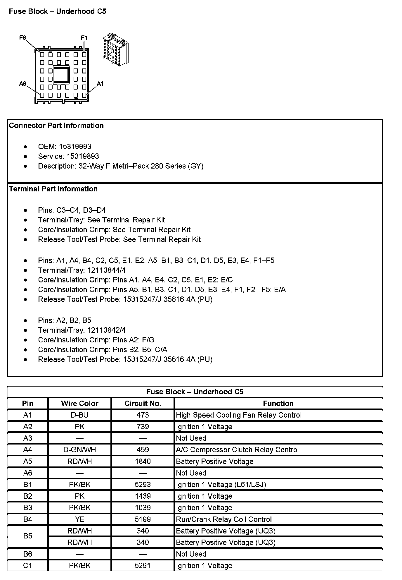 Fuse Block - Underhood C5 (Pin C2 To F6):