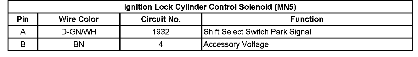 Ignition Lock Cylinder Control Solenoid (MN5):